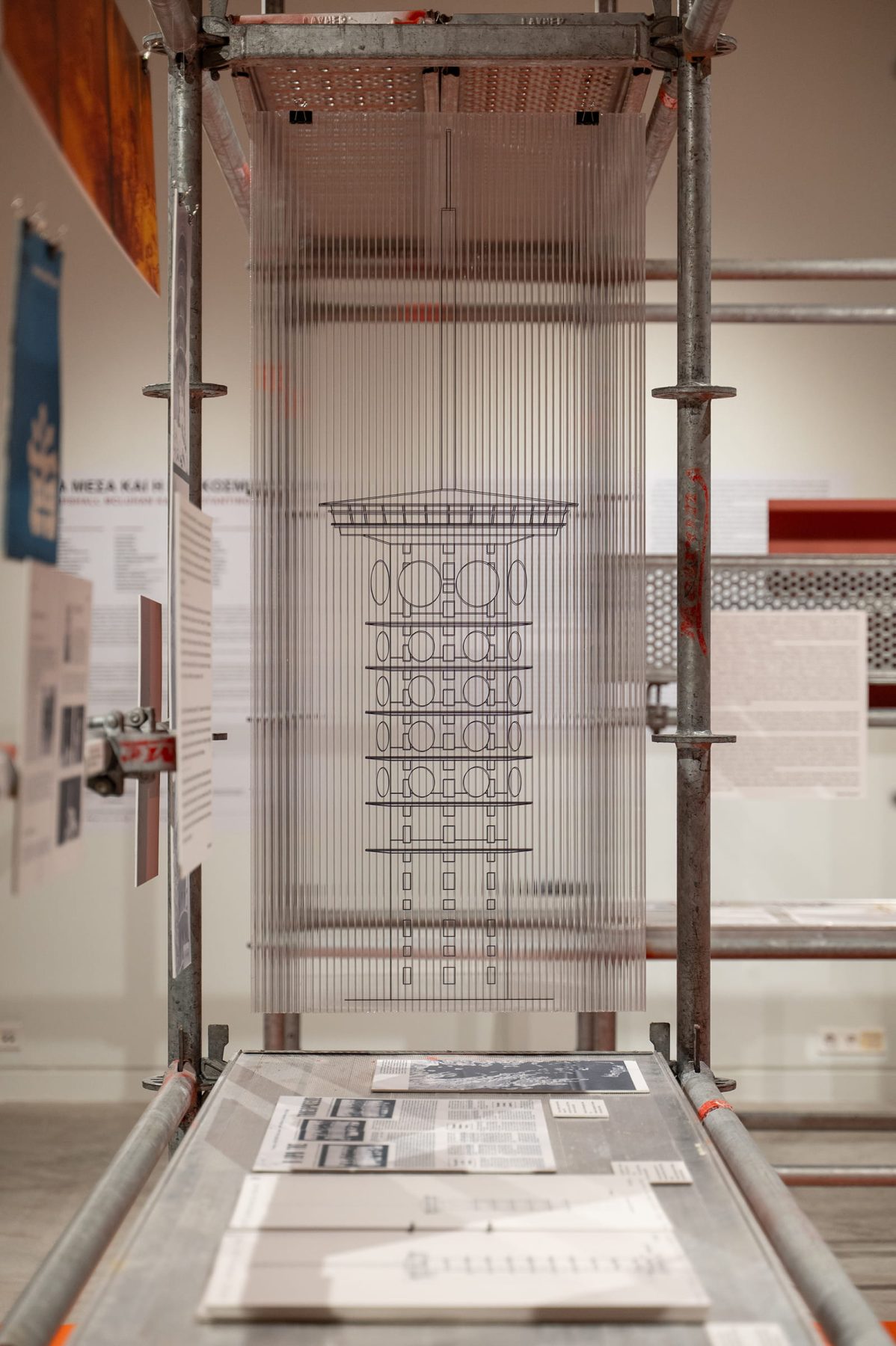 Ένα δίκτυο από μεταλλικές σκαλωσιές δημιουργεί ένα αυτόνομο σύστημα από βιομηχανικά οικοδομικά στοιχεία, ως υπόμνηση της πόλης που βρίσκεται σε διαρκή ανακατασκευή και μετάβαση.