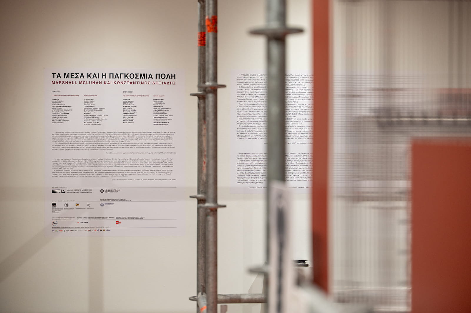 The exhibition was held under the auspices and with the generous financial support of the Ministry of Culture and was also supported by the Constantinos A. Doxiadis Archive and the Constantinos and Emma Doxiadis Foundation, the Marshall McLuhan Estate, The McLuhan Institute, and the C.A. Doxiadis Library of the NTUA.