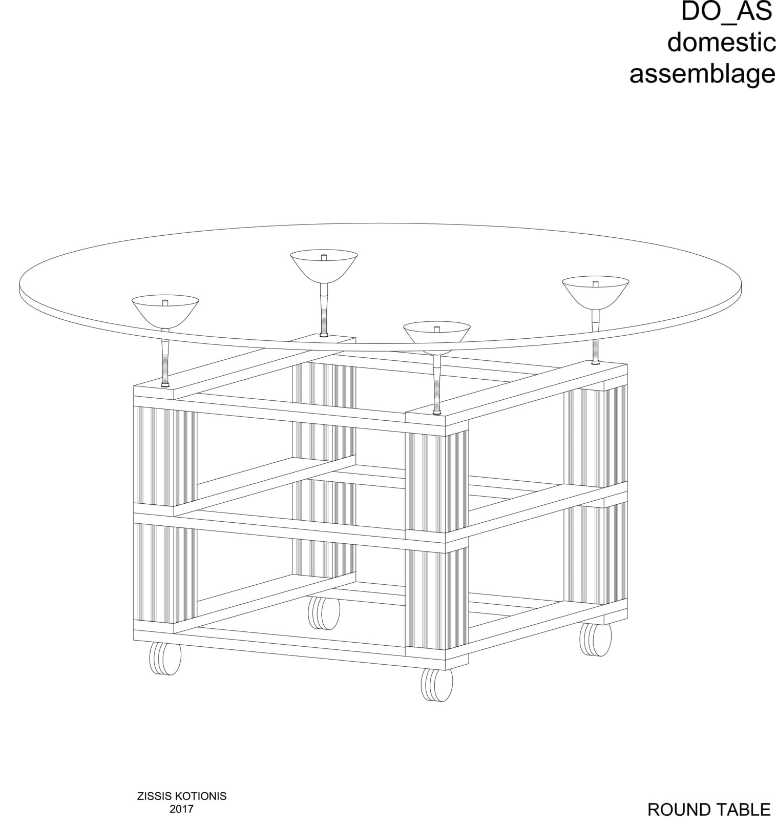 Οι «Οικιακές Συναρμογές Do_As» (Domestic Assemblage) συνιστούν μια εναλλακτική στρατηγική σχεδιασμού και κατασκευής οικιακών αντικειμένων — από έπιπλα και φωτιστικά έως σκεύη και μικρές χωρικές διατάξεις — καθώς και έναν διαφορετικό τρόπο οργάνωσης του σύγχρονου νοικοκυριού. Η προσέγγιση αυτή προτείνει τη δημιουργία οικιακών περιβαλλόντων χαμηλής τεχνολογίας (low-tech), βασισμένων στην κυκλικότητα, την επανάχρηση, το χαμηλό κόστος και, κυρίως, στη δυνατότητα αυτοκατασκευής (D.I.Y.) από τον ίδιο τον χρήστη με απλά και προσιτά μέσα.