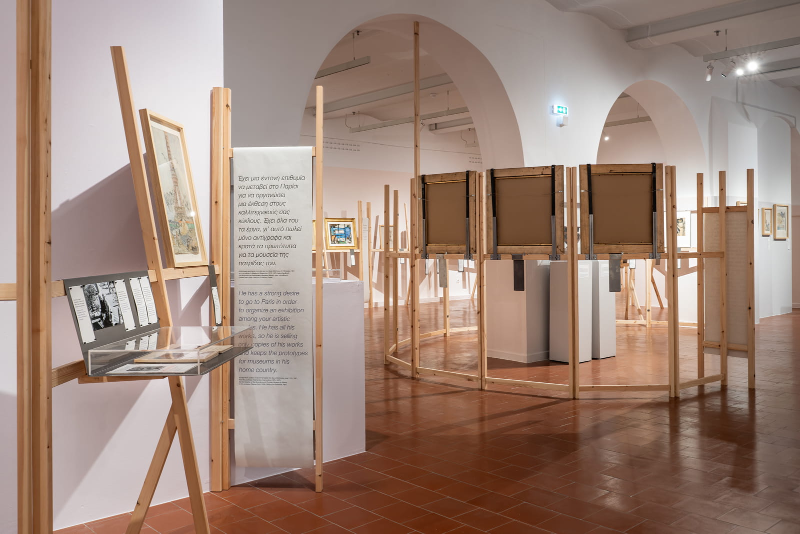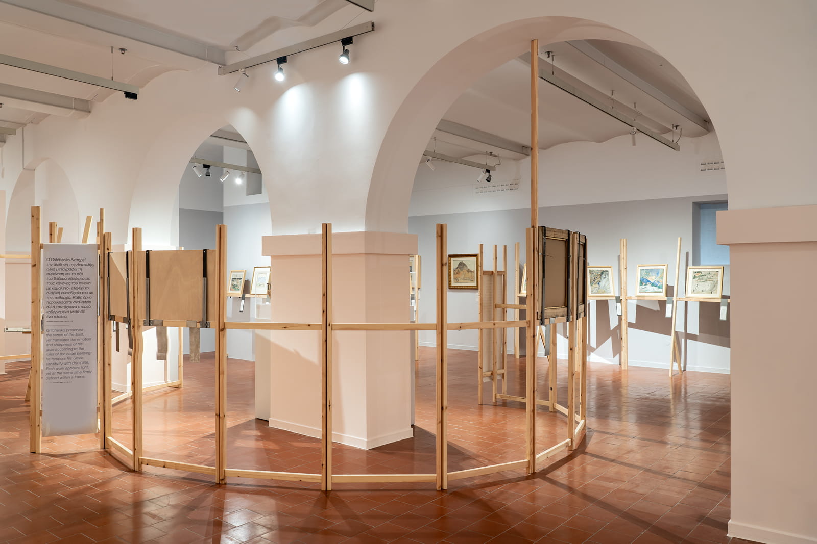 The architectural installation EASEL was designed for the MOMus exhibition in Thessaloniki, “Alexis Gritchenko (1883–1977). The Greek Adventure. A Ukrainian Pioneer in Greece,” curated by Michel Lièvre Markovitch and Maria Tsantsanoglou. Katerina Kotzia and Korina Filoxenidou, founding members of K&K Architects, developed a modular structure made of fir wood that evokes an easel, reflecting the artist’s constant movement and his connection to watercolor as a medium of freedom, speed, and flexibility.