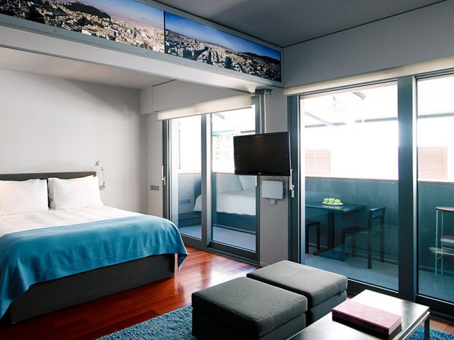 Periscope has 21 rooms. Among them 4 Junior Suites and 1 luxurious Penthouse Suite, each following current trends in urban architecture and equipped with high quality facilities. The Penthouse Suite boasts a roof top Jacuzzi which captures Acropolis, Lycabettus and the rest of Athens in a truly panoramic view.