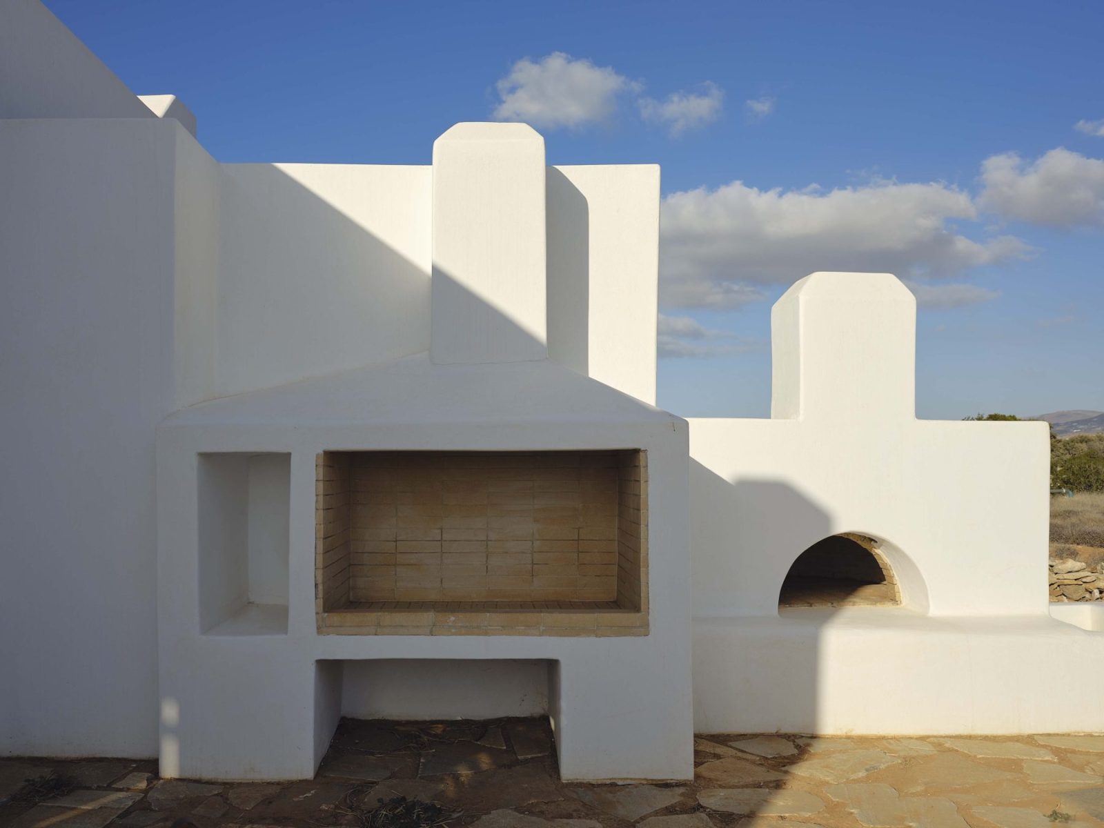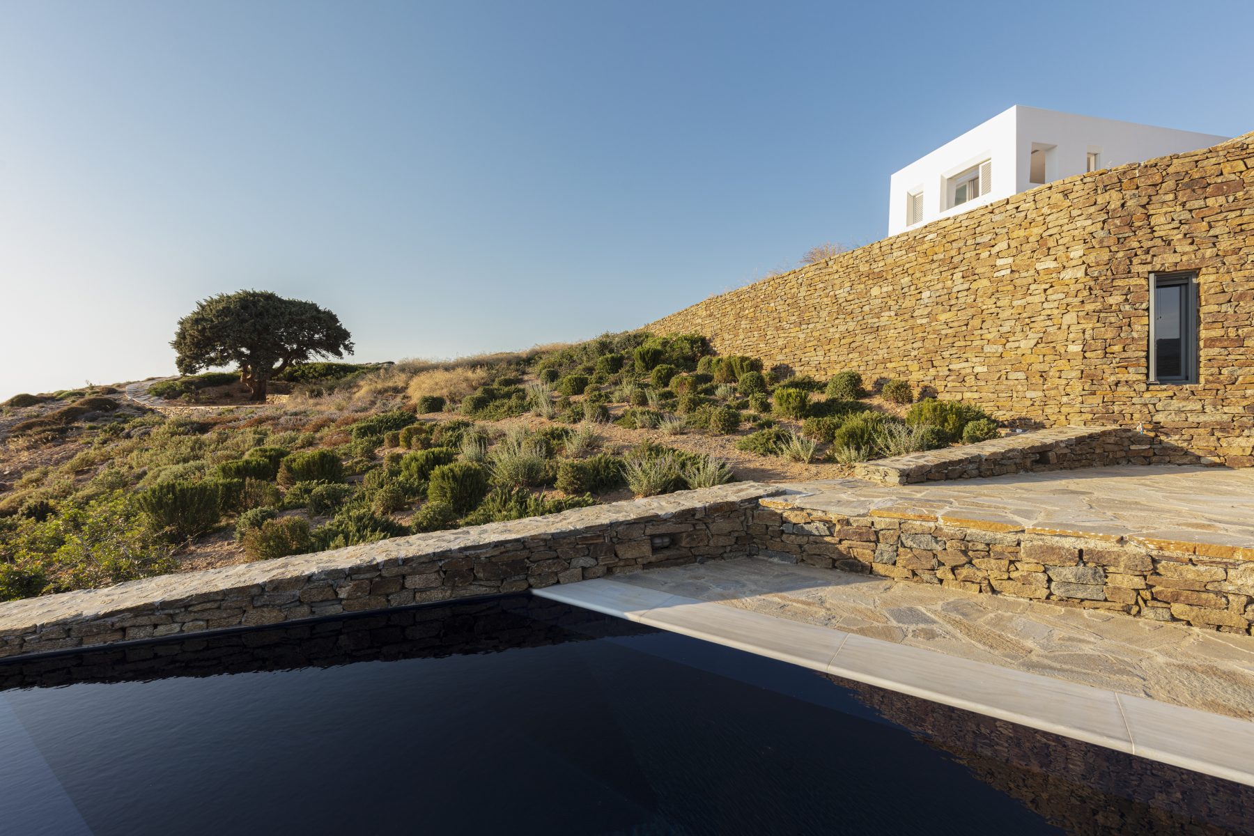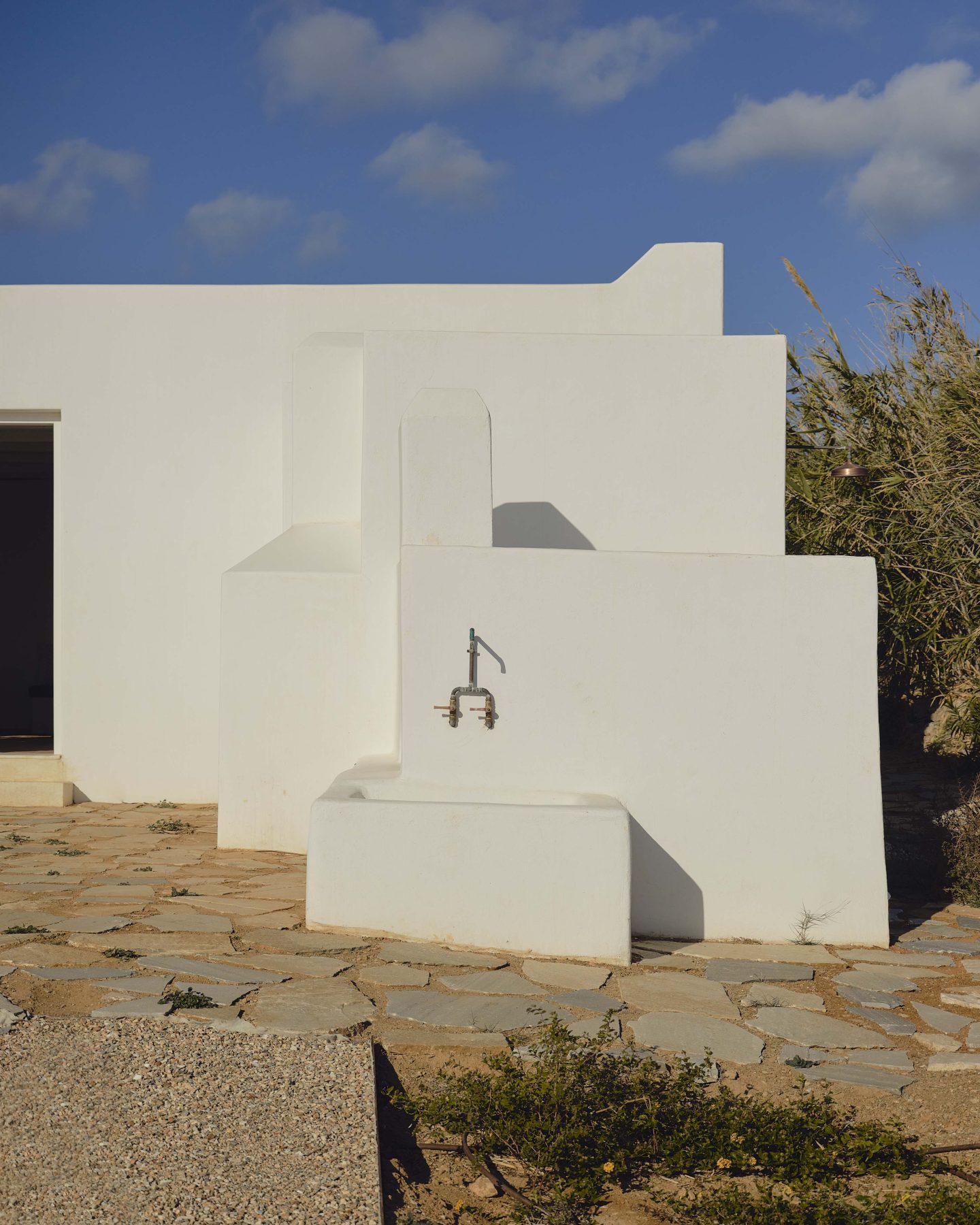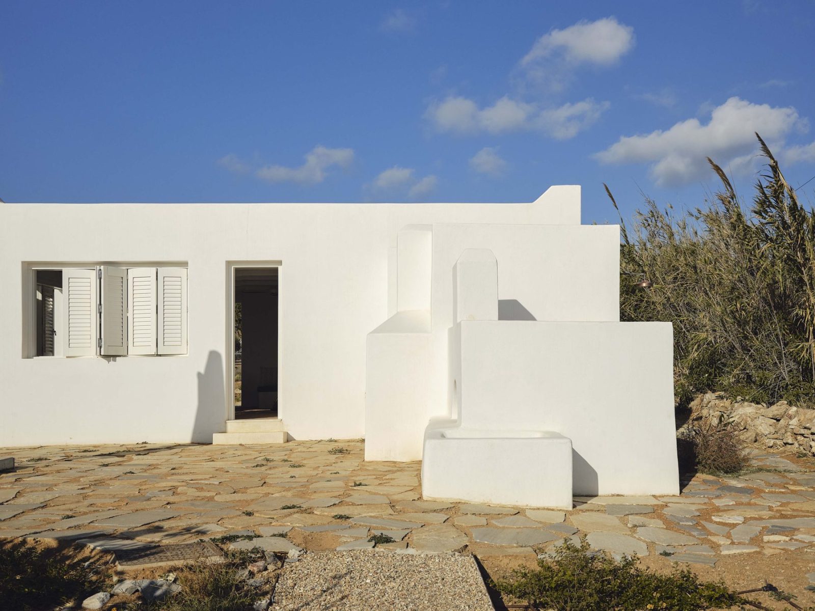 The house remains embedded within a landscape marked by ceramic antiquities uncovered on site. The material palette is intentionally restrained, drawing from the vernacular character of older island dwellings.