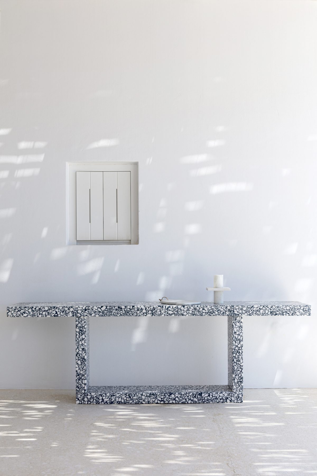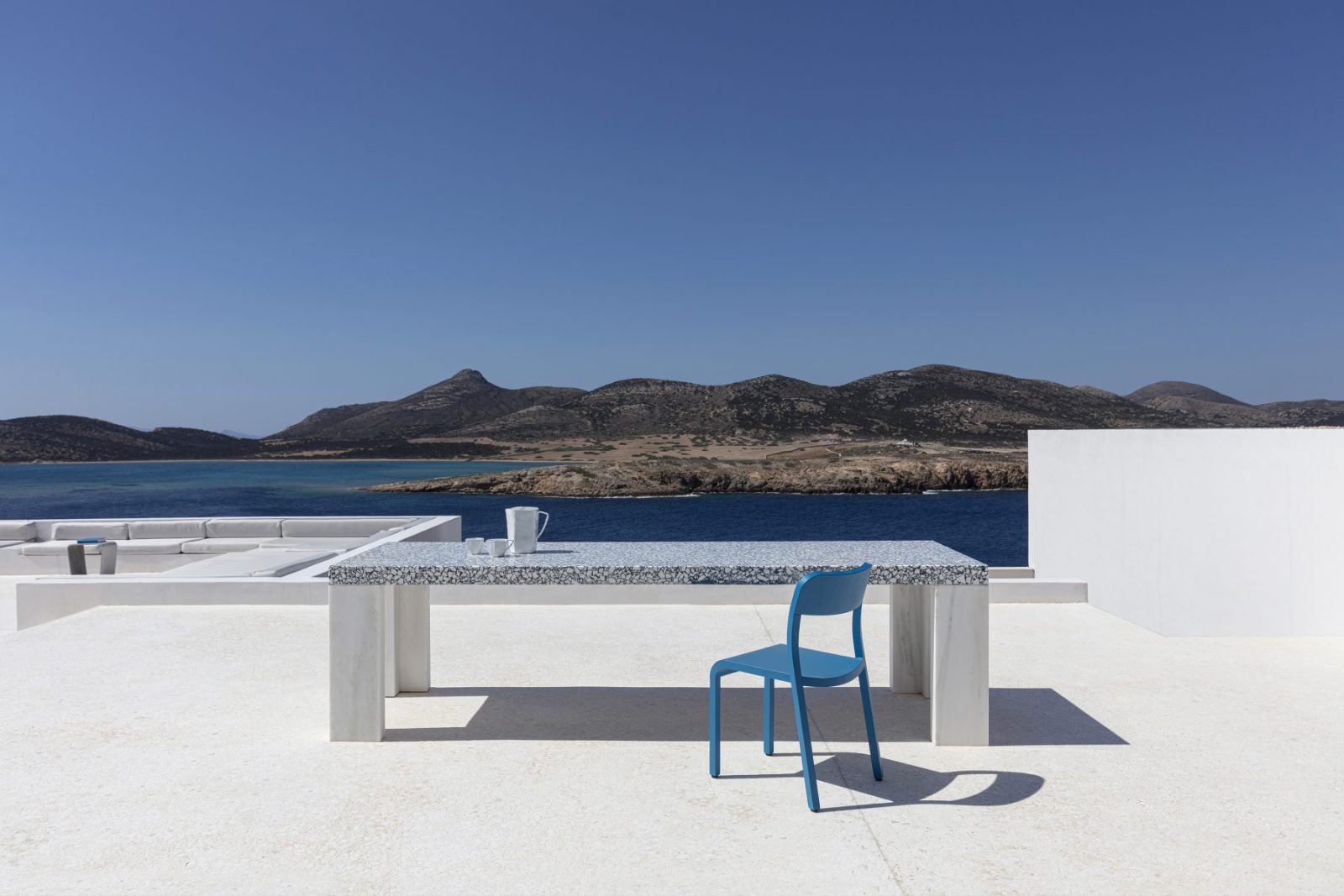 Materiality plays a central role in the collection, with pieces constructed from traditional terrazzo, Pendelikon marble from Attica, and solid oak. Defined by clarity of geometry and robustness, the furniture accommodates the evolving needs of summer living. Its durability—resistant to salt exposure and corrosion—combined with a timeless aesthetic, reinforces its integration within the coastal landscape.