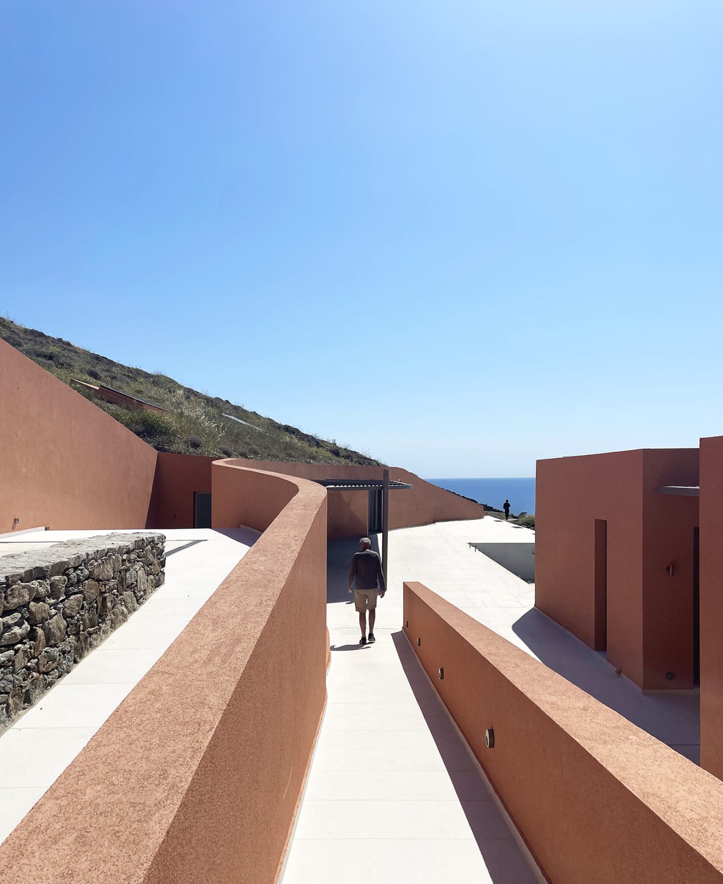 Olen Resort is developed on a remote, seaside, amphitheatrical plot characterized by a strong southward slope and a view of the unbounded Aegean Sea. Main challenge of the project was to meet complex functional requirements, considering the morphology of the terrain and the importance of minimizing the alteration of the natural landscape.