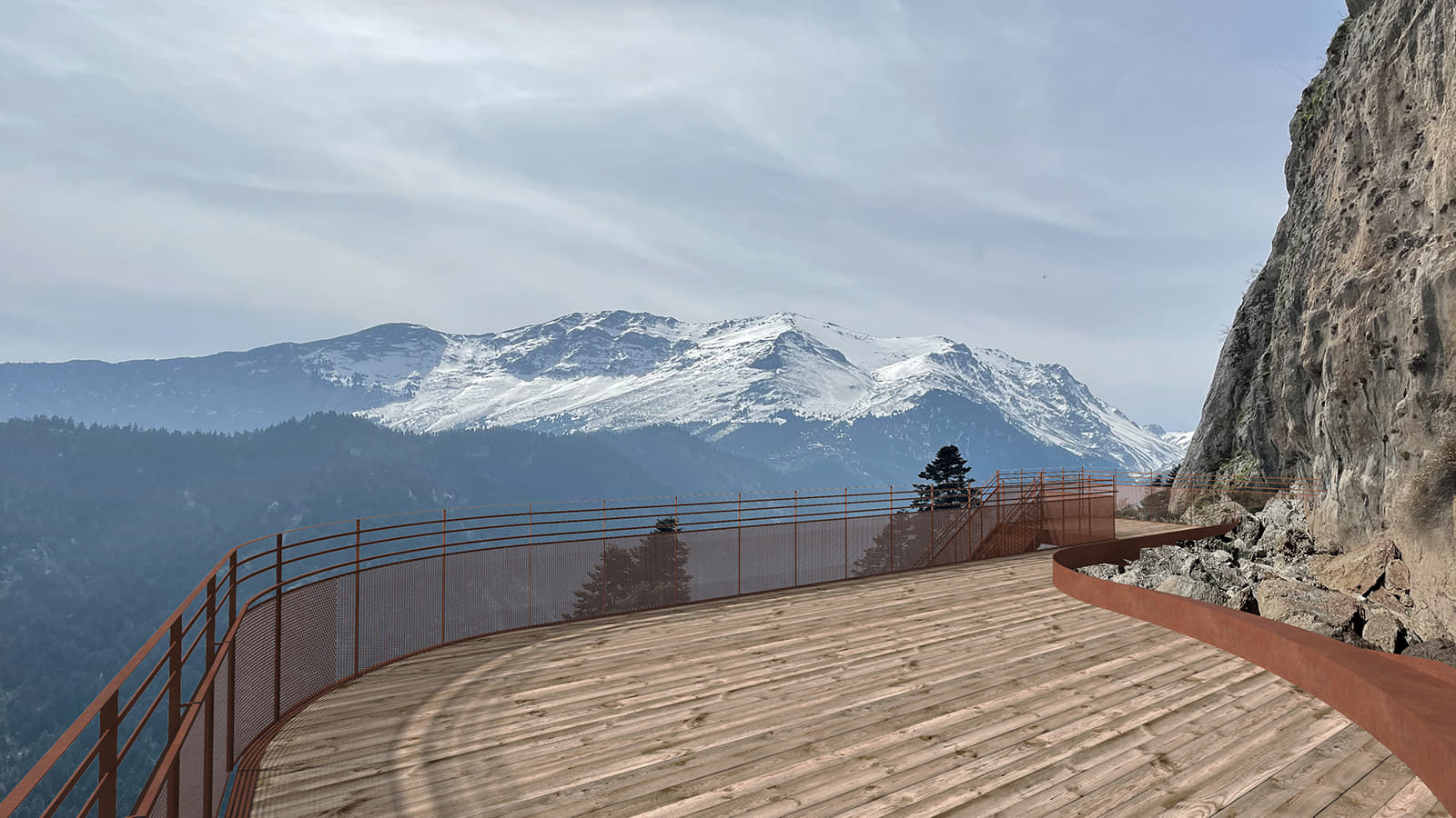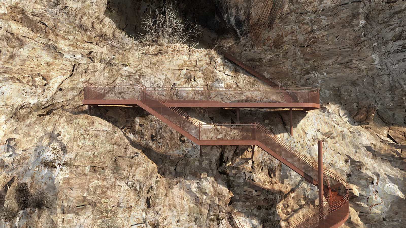 The objective of this study is to create a safe access for the visitors through a spiral staircase, while respecting the landscape where the construction is planned. Therefore, the key principles of the architectural design are its gentleness, its reversible character and its smooth integration into the natural environment.