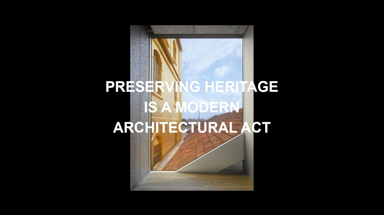 “Μας είχαν εκπαιδεύσει να πιστεύουμε ότι η κληρονομιά και η διατήρηση είναι το αντίθετο της αρχιτεκτονικής, και ότι υπάρχουν δύο στρατόπεδα: αυτοί που εργάζονται πάνω στα προοδευτικά ζητήματα και αυτοί που αντιστέκονται την πρόοδο.”