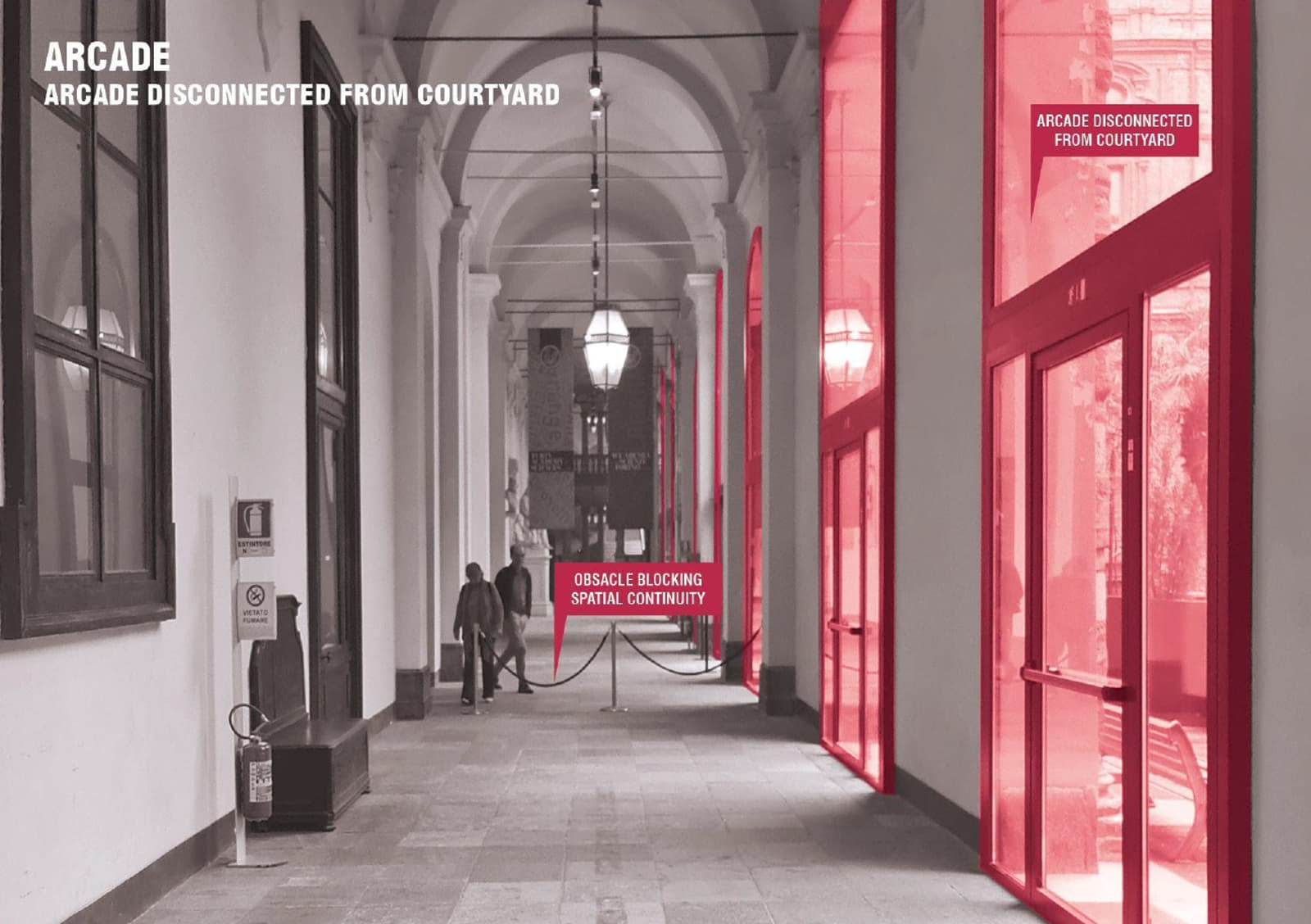 Για να επιτευχθεί μια τέτοια λειτουργία, έπρεπε να δημιουργηθούν νέοι είσοδοι, πέραν της μιας υφιστάμενης. Αυτό κατέστη δυνατό, μέσα από την αξιολόγηση του τι αξίζει να παραμείνει και τι όχι. Η κίνηση οργανώθηκε βάσει των αναγκών των διαφορετικών χώρων και των νέων χρήσεων του μουσείου.