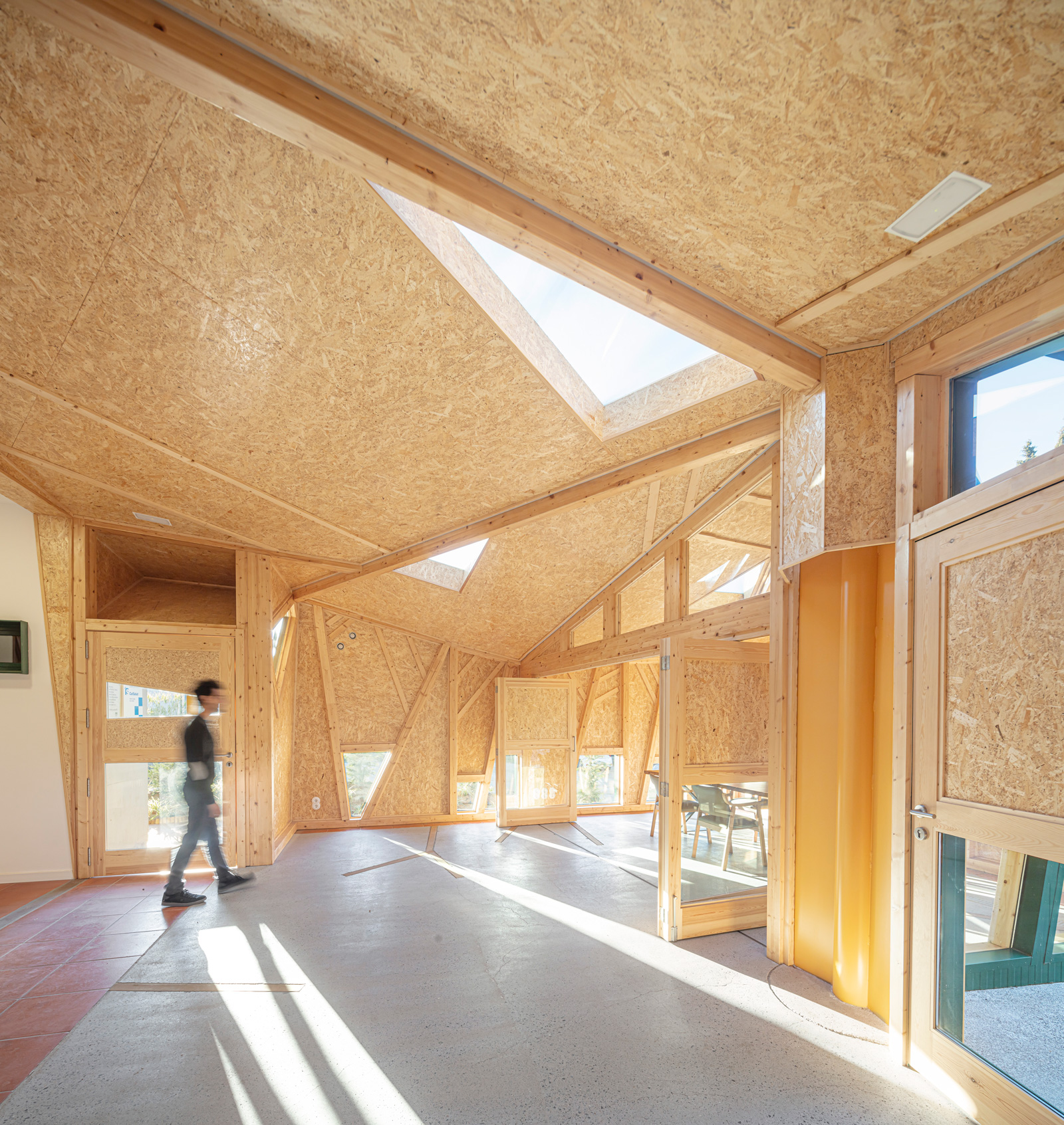 It was about designing a welcoming space for the families of patients, a meeting point between family members, center professionals, and patients themselves. It had to be a friendly, familial space, very domestic in terms of dimensions, with emphasis on materials, colors, light, both natural and artificial, and above all, easily relate to the building and existing spaces.