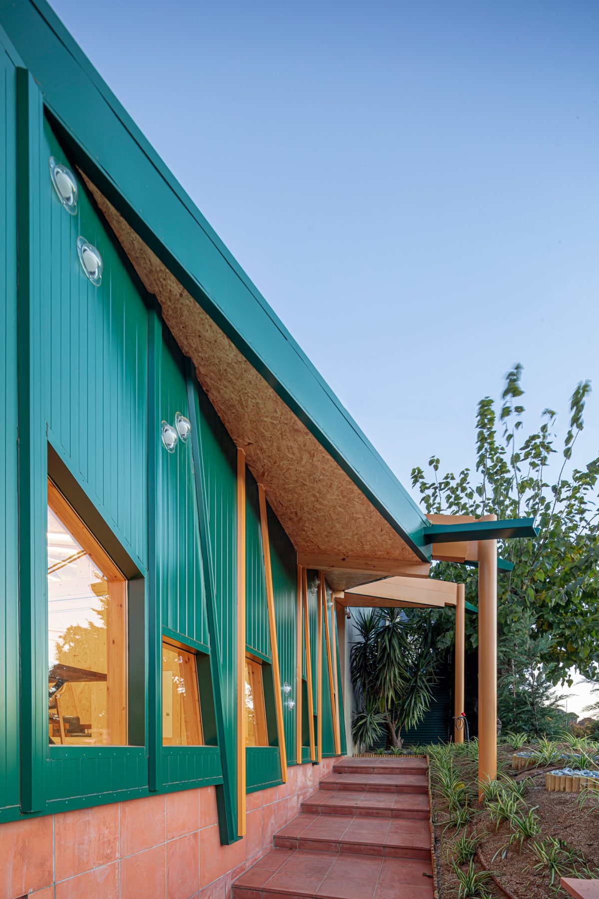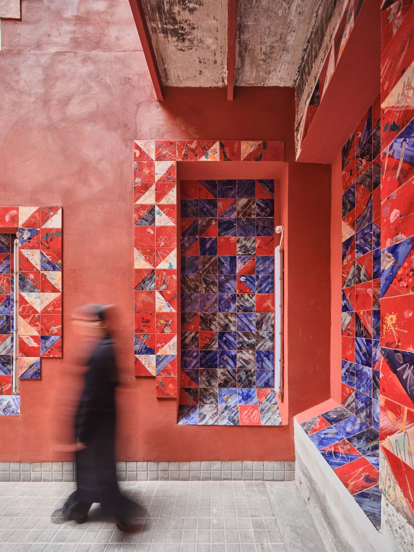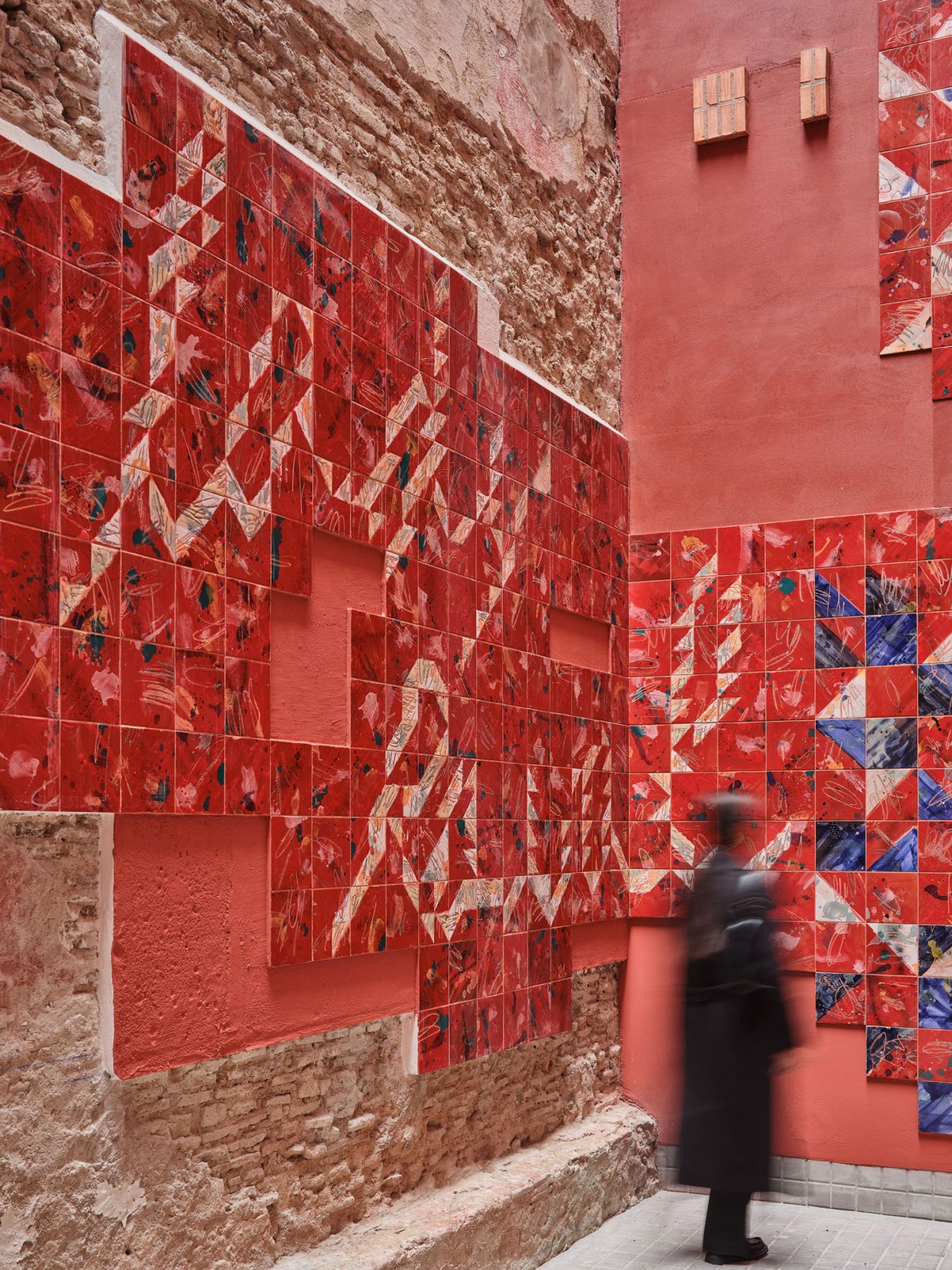 This new courtyard fosters social interaction and a sense of belonging. Its perforated enclosure walls are clad in humble materials, while the openings are framed with ceramic elements inspired by textiles and garments. These ceramics, crafted by Carlos Jiménez Cenamor—architect and ceramist (DelAmorYlaBelleza)—draw on patterns and geometries typical of the residents’ places of origin and reflect the vibrant, optimistic colours of their cultural traditions.