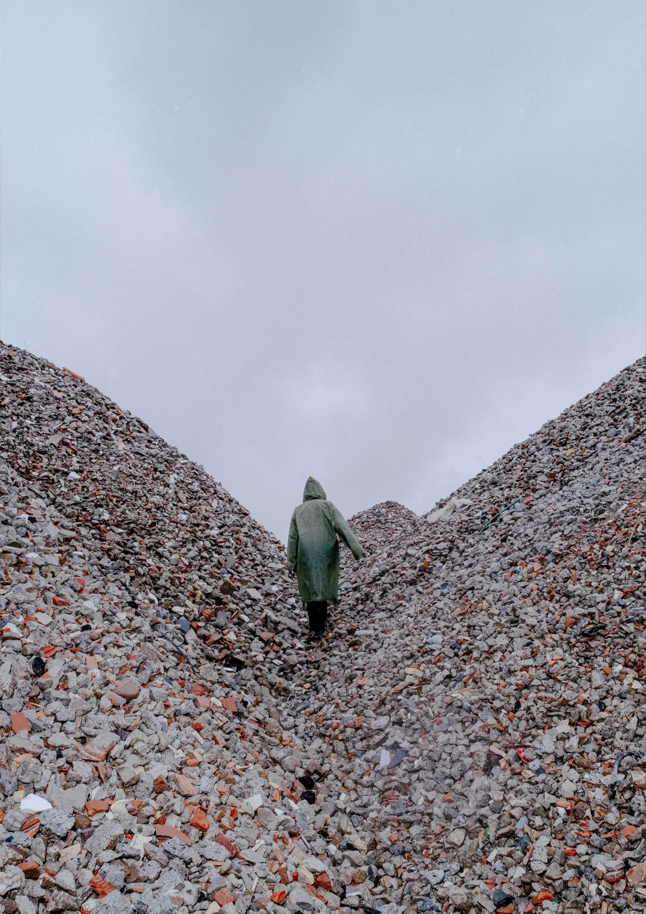 Composed of circular concrete volumes and aggregates obtained from crushed waste materials, the artificial boulders merge material reuse with a geological language that resonates with the site’s cultural context.