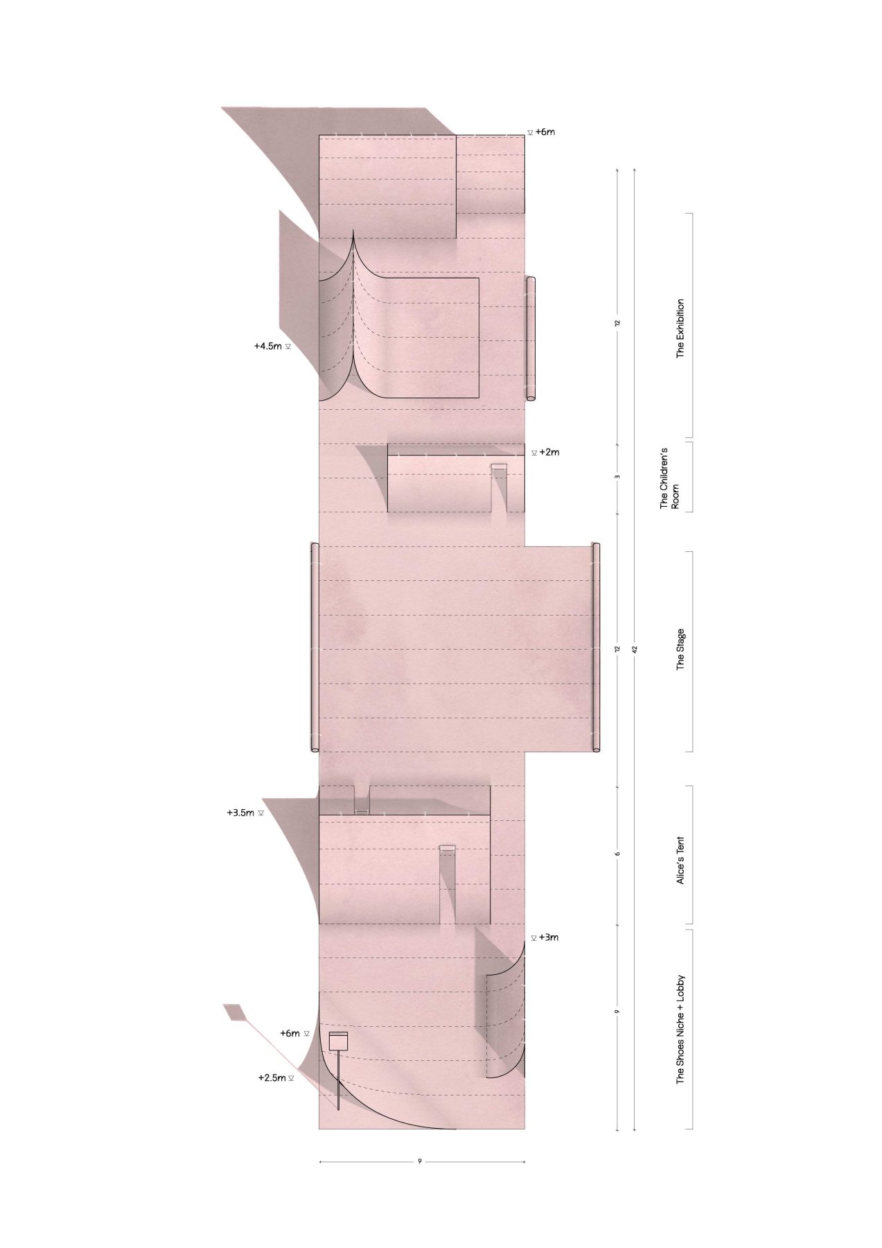 Conceived as a vast textile landscape, the Soft Palace unfolds as a continuous carpet that folds, rolls and gathers into a spatial garment, generating a topography of creases, pockets and soft thresholds.