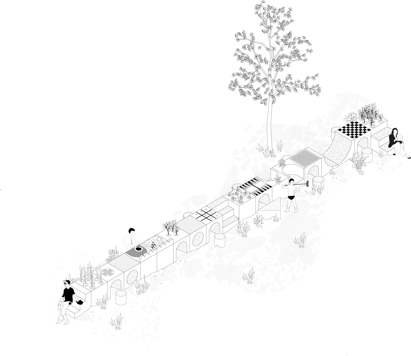 Conceived as a multi-purpose surface, the Garden Table accommodates a wide spectrum of activities—from collective barbecues, cooking classes and communal dinners to board games, gardening and spontaneous gatherings—remaining open day and night as an inclusive civic platform.