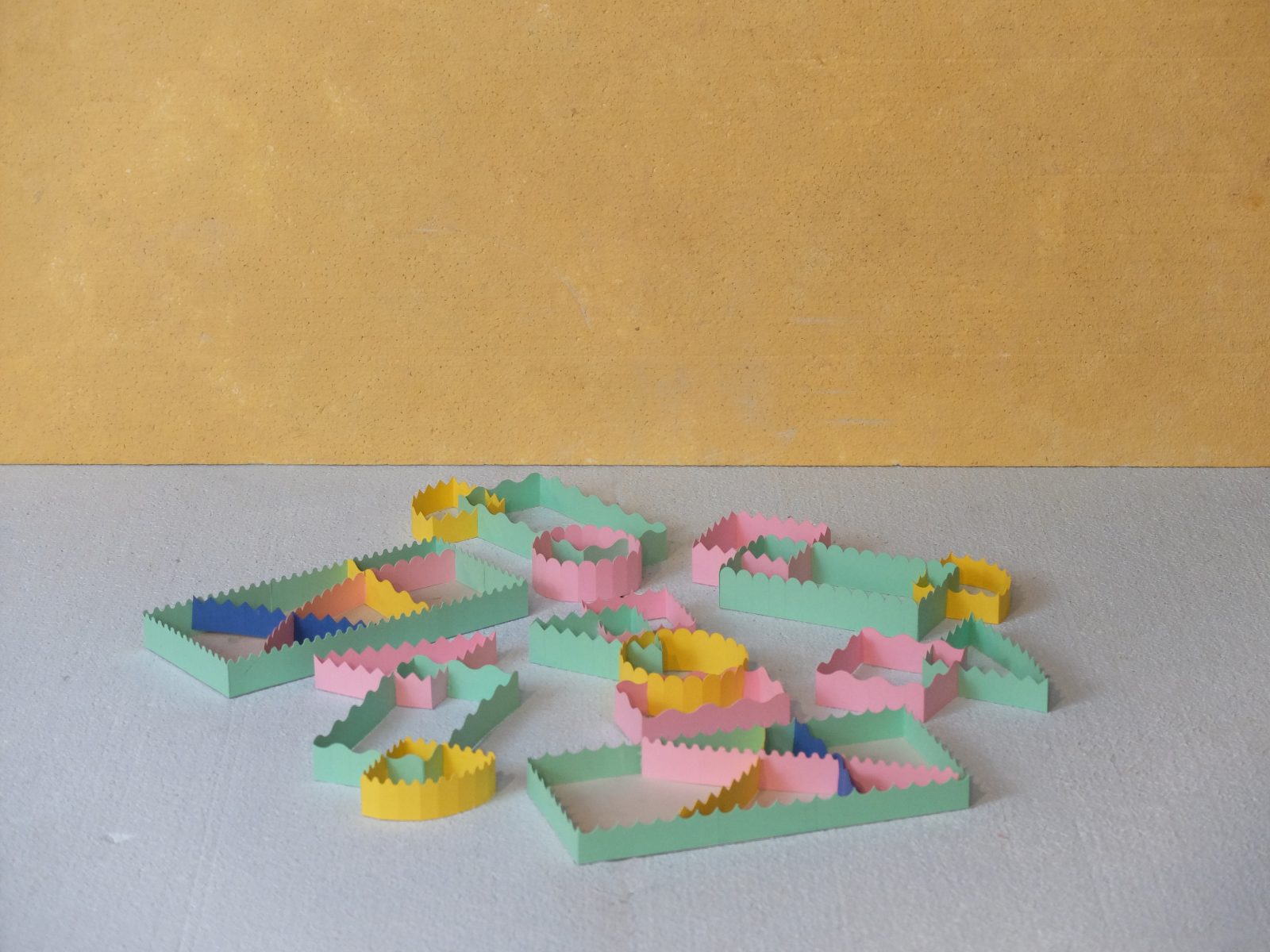 Developed in collaboration with GAMeC in Bergamo, Massi Erratici (2024) is conceived as a collection of modular surfaces and volumes that organise a range of museum-related activities, from bookshop displays and outdoor exhibitions to editorial meetings and presentations of works from the collection.