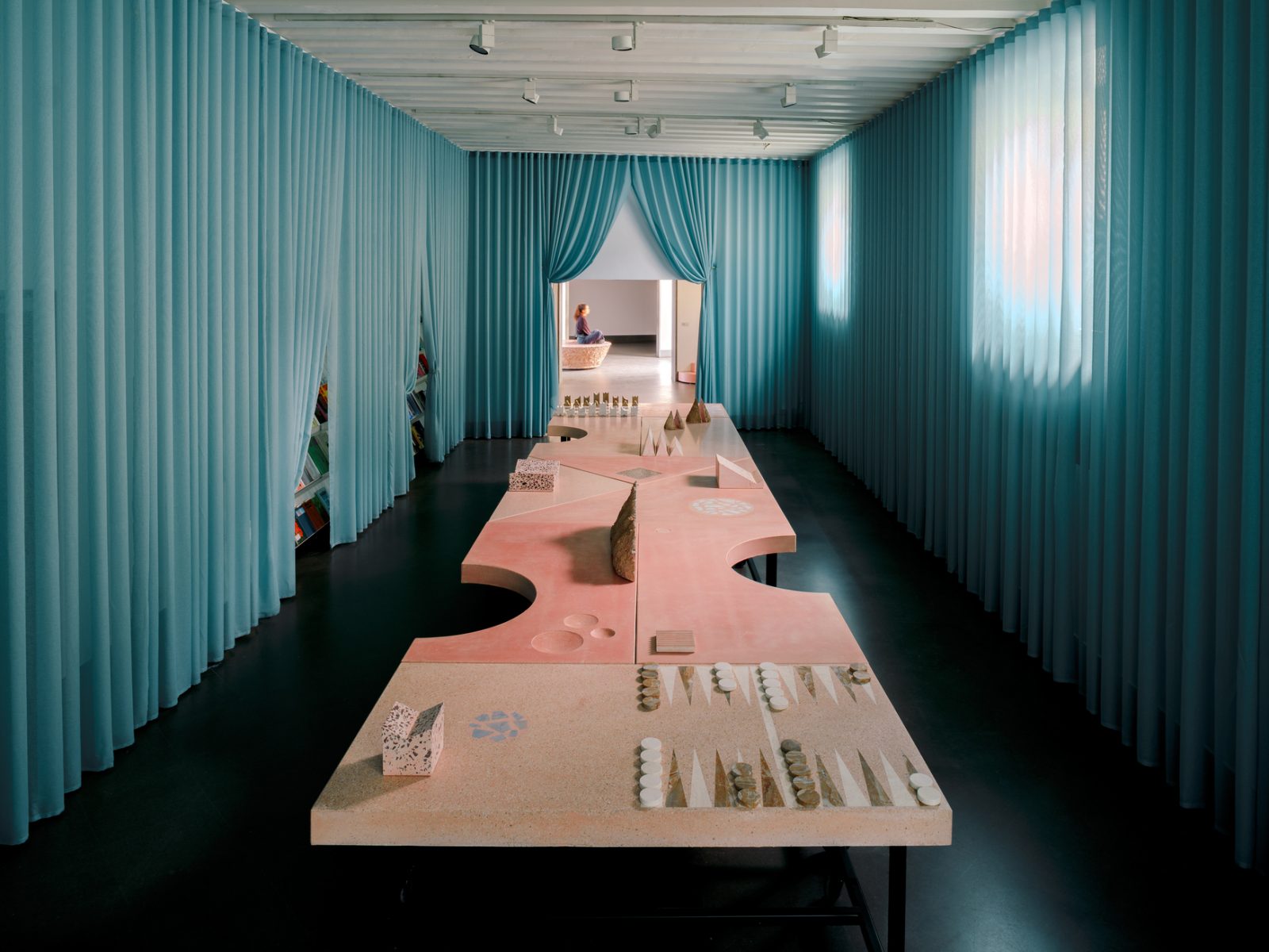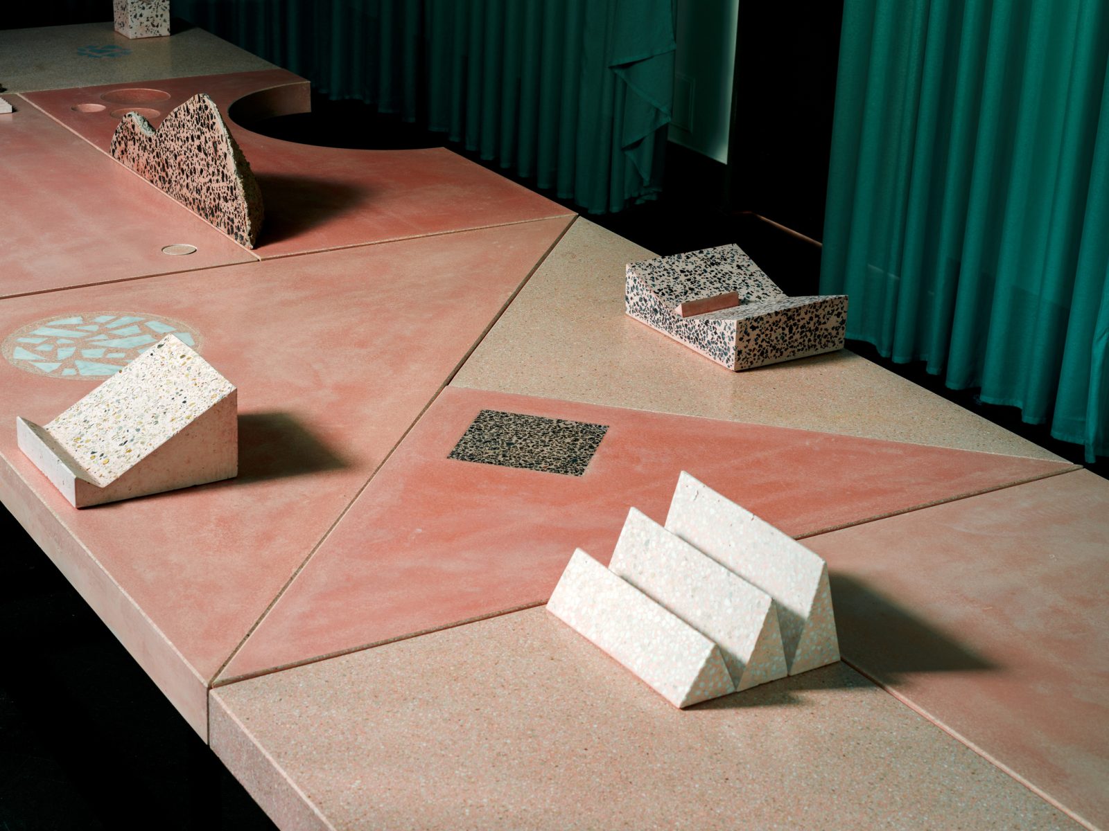 Conceived as erratic stones scattered throughout the museum, the modules foster proximity between visitors, staff and artworks. Their polyvalent surfaces can alternately host meetings, function as seating, support books or display artworks, framing people, objects and plants with equal attention.