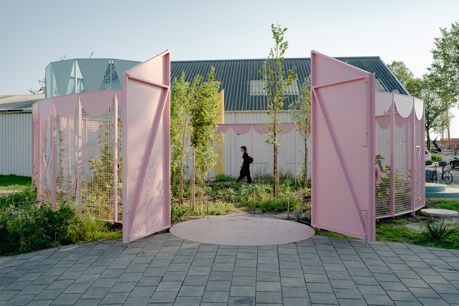 Installed on the NDSM-werf at the former site of Sexyland and set to remain for at least two years, the project revisits the historical notion of the Lusthof—gardens once designed to stimulate the senses yet often reserved for elite retreat—and repositions it within a contemporary, post-industrial context. Drawing parallels between secluded pleasure gardens along the Vecht and today’s semi-private residential courtyards, the project questions who has the right to access green spaces in the city and under what conditions.