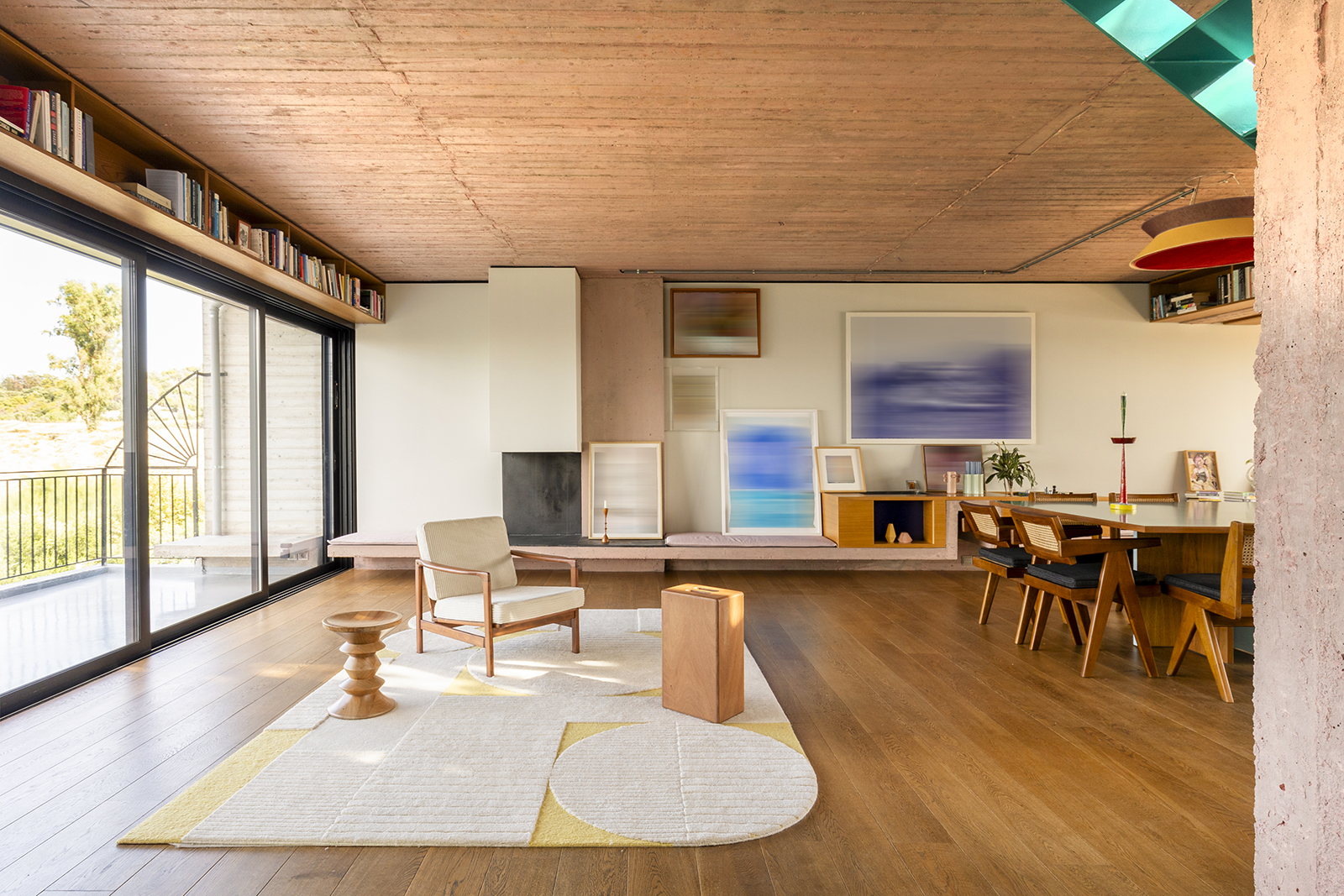 Bajet Giramé reimagine two interconnected studios in Poblenou as a mutable domestic landscape where atmosphere is constructed through layers rather than fixed form. Set within a vast 1970s industrial building, the project preserves the open-plan pragmatism of the original structure while redefining its edges and interiors through a system of superimposed strata. Here, colour operates alongside materials, objects, and textures as a tectonic agent, binding ‘found’ elements, lightweight structures, textile filters, and wooden volumes into a coherent yet adaptable whole. As utensils and belongings become integral architectural components, colour becomes structure, shaping an environment designed to evolve over time through use, interaction, and inhabitation.