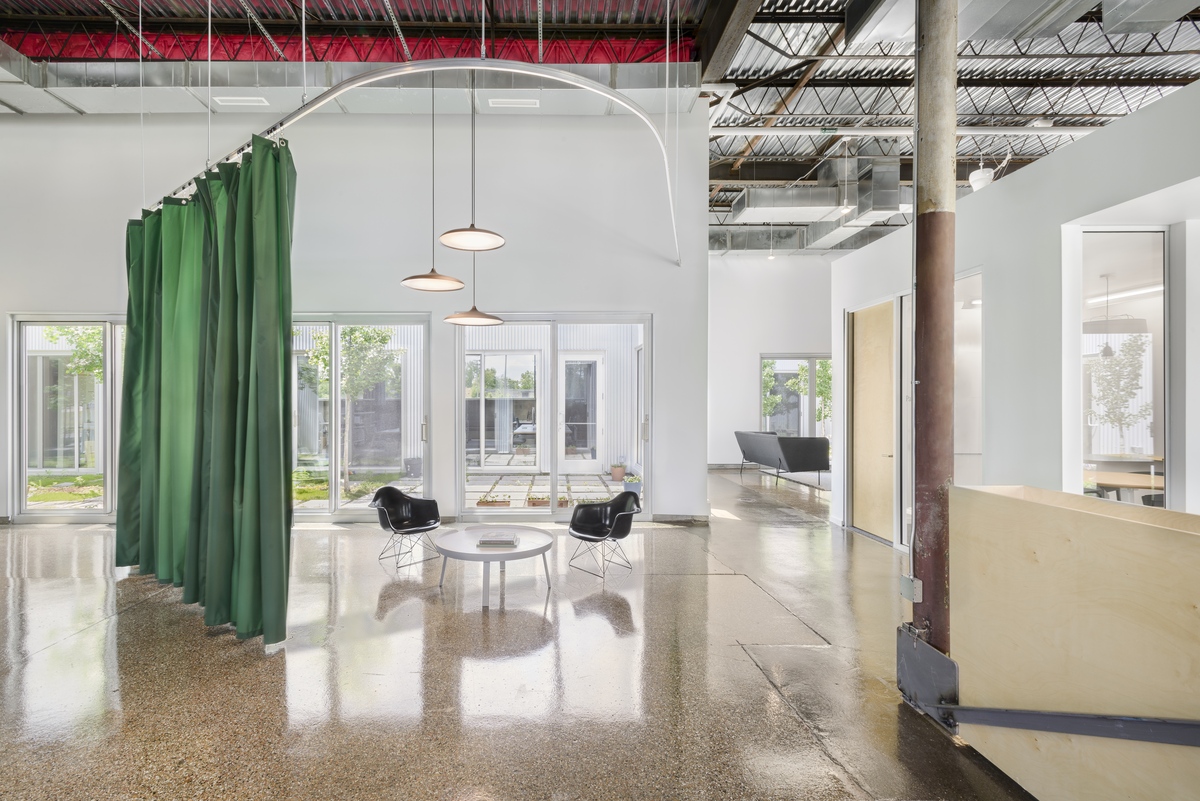 At 5000 Grand River, M1DTW Architects transform a former grocery store into Bloomscape’s expansive headquarters, redefining what the contemporary workplace contributes to culture, creativity, and social life. Embracing the building’s third act, the project capitalizes on the raw generosity of the shell, its high-bay volumes, mezzanine, and open courtyards to create an environment that encourages coexistence and collaboration. Carefully inserted programmatic elements, private offices, meeting spaces, and wellness areas, introduce moments of intimacy and density beneath the mezzanine, forming a deliberate counterpoint to the openness of the lofty zones. The result is a workplace conceived not merely as a site of production, but as a social and cultural landscape that supports interaction, flexibility, and collective experience.
