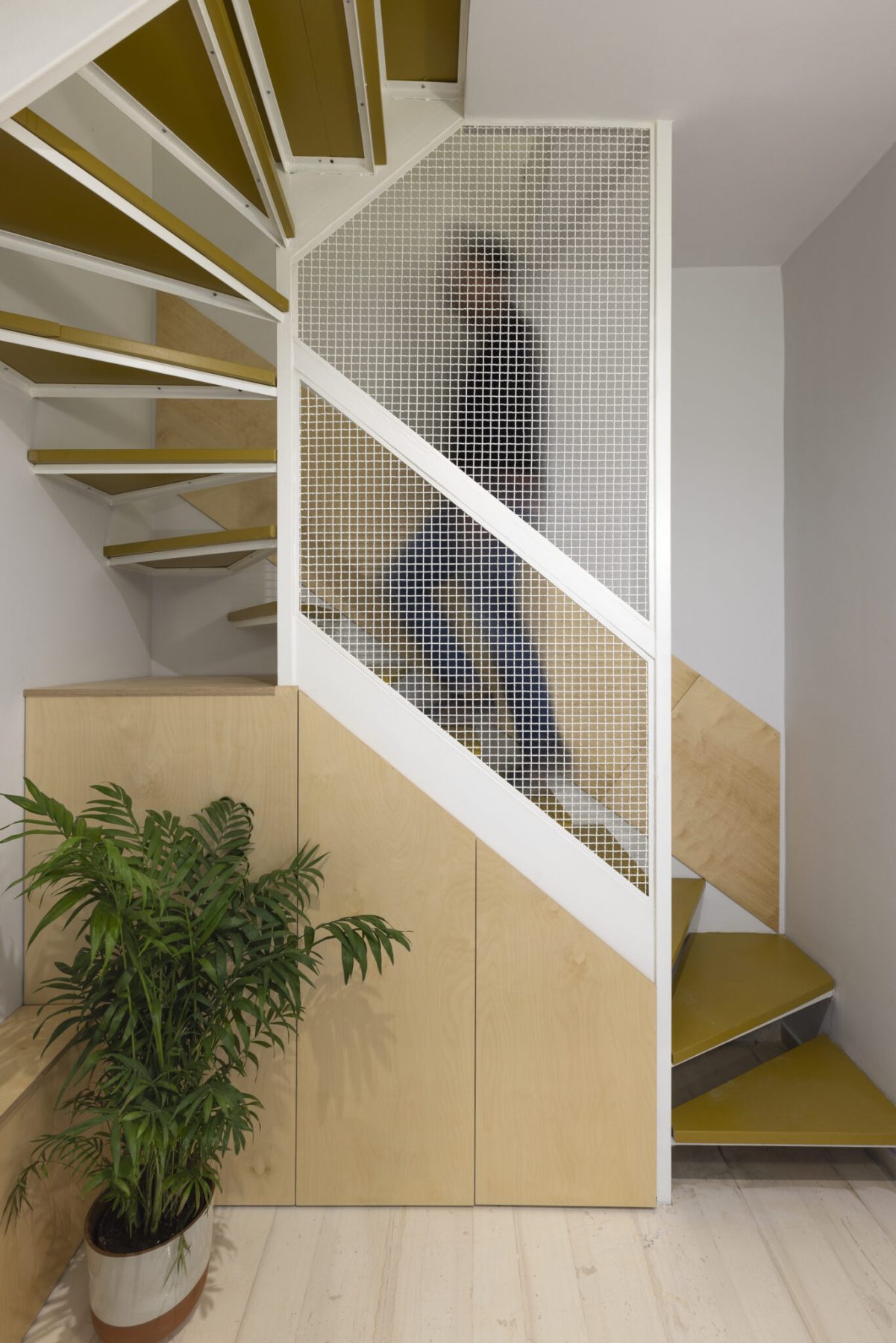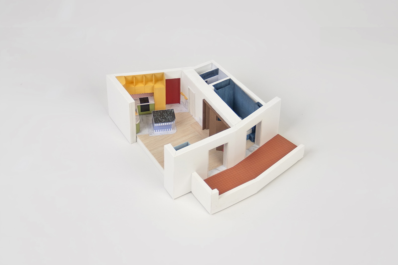 AR03412 STUDIO transformed an existing apartment into a vertically articulated domestic environment. The intervention generates three distinct areas: a shared reception space with a staircase, a 40 m² studio on the first floor, and a 20 m² studio on the second. The architectural approach balances flexibility with autonomy, allowing shared circulation to coexist with independent living units.