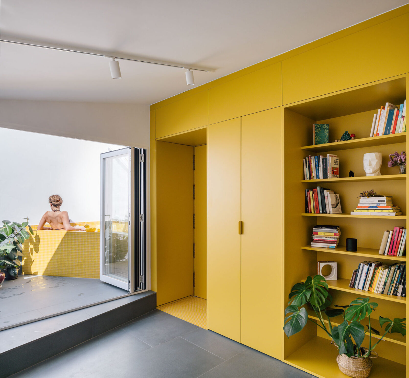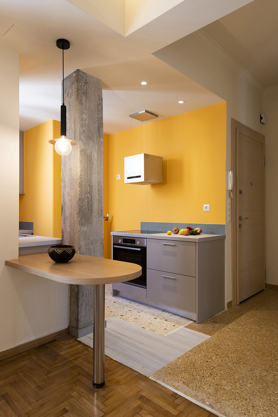 Project 11 is a compact 49 m² apartment in the Pangrati district of Athens, shaped by the continuous property subdivisions that characterized Athenian modern buildings in the second half of the 20th century. Architect Orestis Sakellariou refurbished the dwelling into a fluid, playful domestic landscape, animated by a distinctive sunflower-yellow palette.