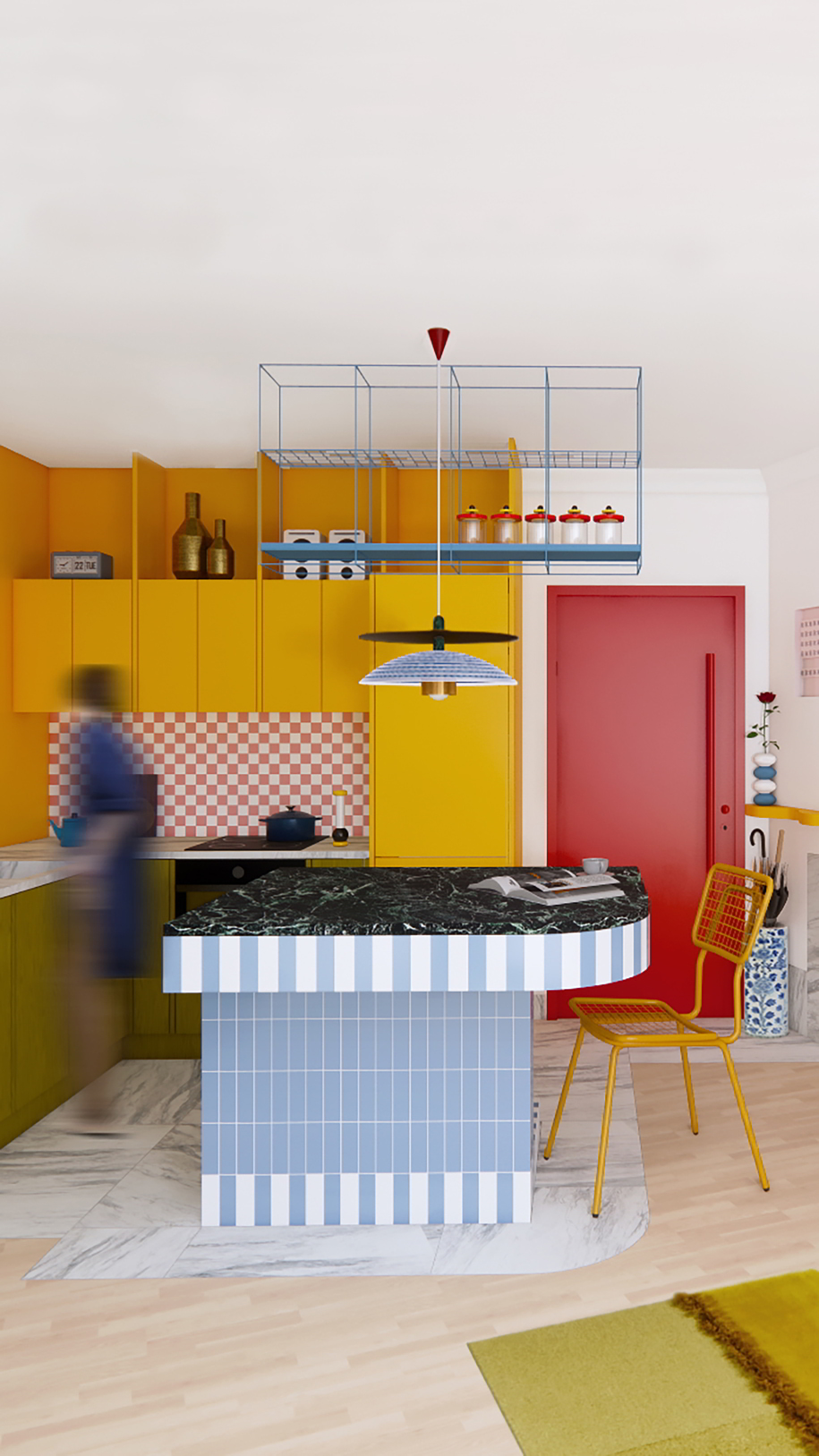 This project renovates a 35 m² micro-apartment in Athens by Oikonomakis Siampakoulis Architects, designed for dual use as a short-stay home for its two owners and as a guest space for friends and family. Reflecting the owners’ creative backgrounds in the arts, the interior employs a bold palette of colours and materials to create a distinctive, characterful atmosphere within an otherwise typical 1980s residential building.