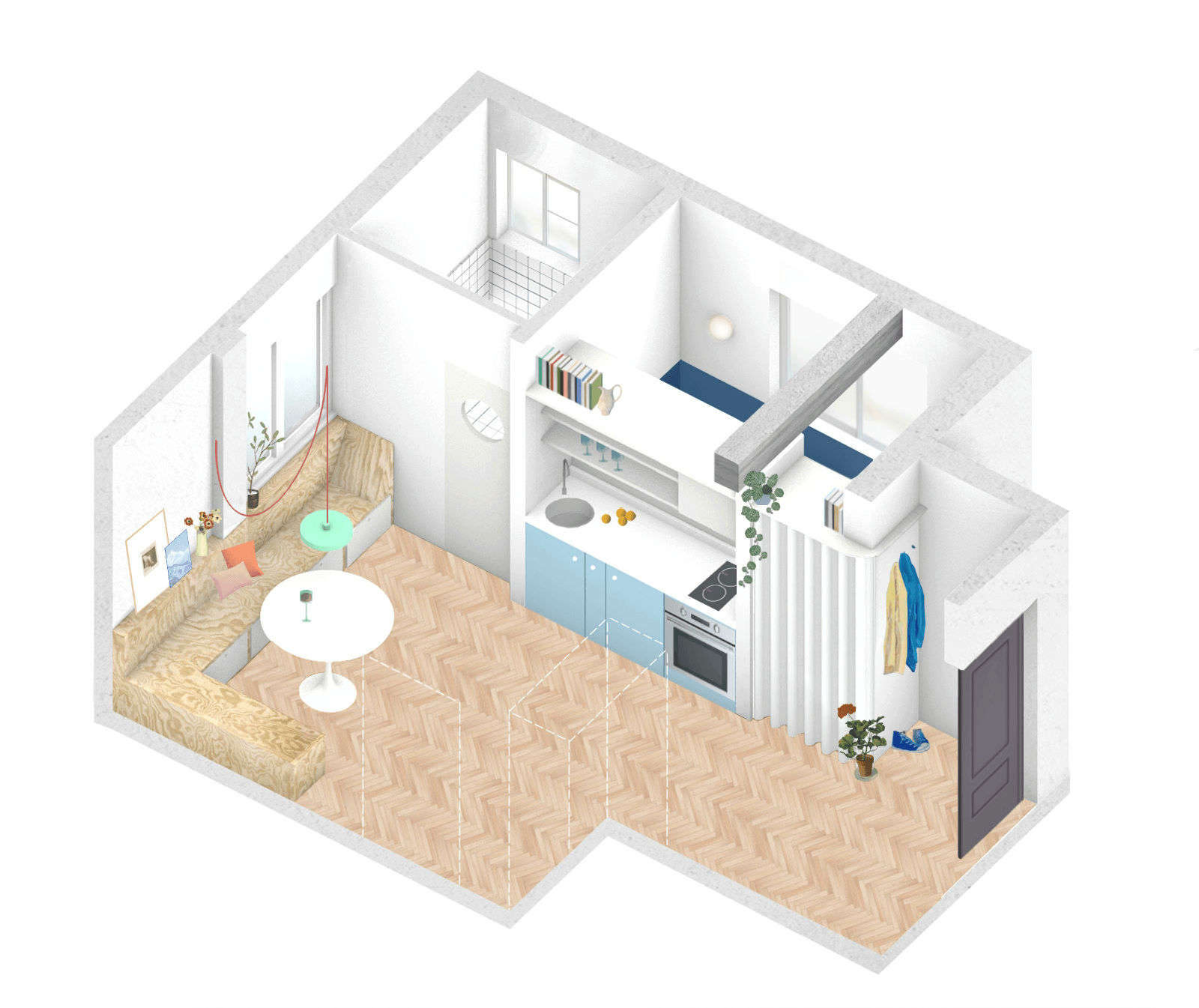 Micro-living tells a story of domesticity unfolding within contemporary metropolises, where intensity replaces abundance. Within this ferocious urban complexity, the minimum housing unit—the apartment—is drastically compressed. One fundamental question arises: How small is too small? And how far can reduction go while a space still remains a home?