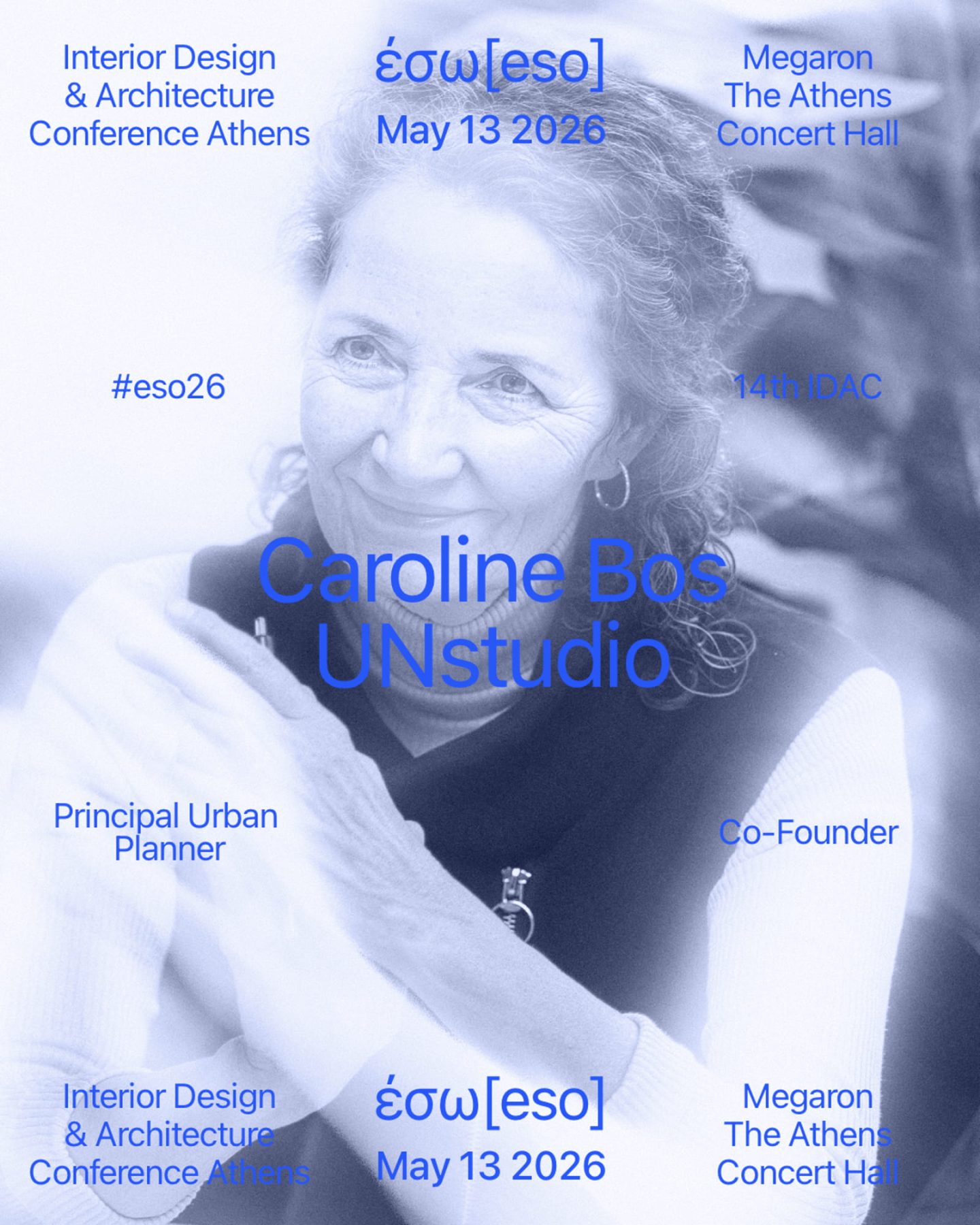 Στη φετινή διοργάνωση συμμετέχει επίσης η Caroline Bos των UNStudio, συνιδρύτρια του διεθνούς αρχιτεκτονικού γραφείου με έδρα το Άμστερνταμ, της οποίας το έργο και η θεωρητική συμβολή έχουν διαμορφώσει έναν τρόπο σκέψης όπου η αρχιτεκτονική λειτουργεί ως πεδίο έρευνας, στρατηγικής και διαλόγου ανάμεσα στην κοινωνία, την τεχνολογία και το δομημένο περιβάλλον.