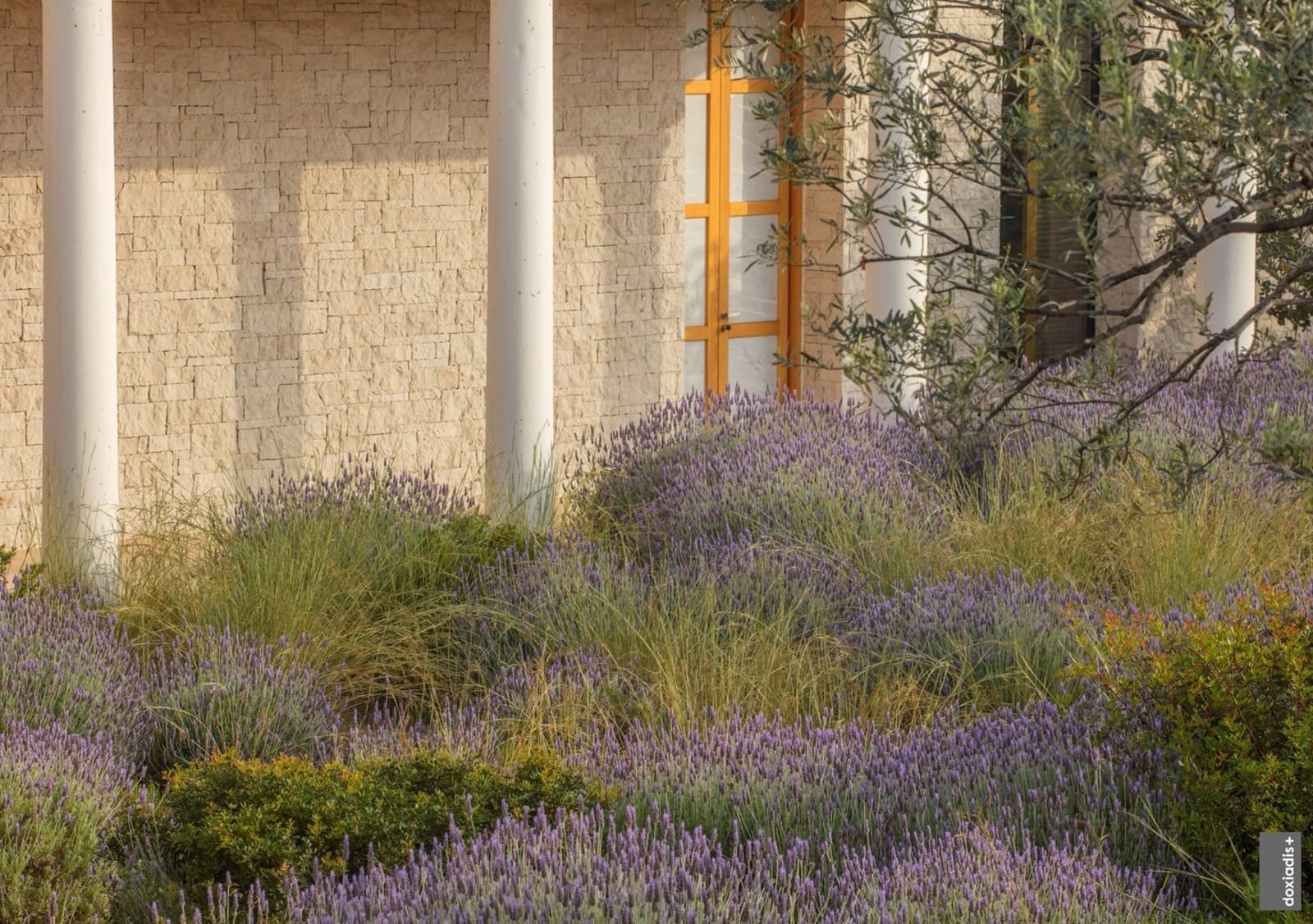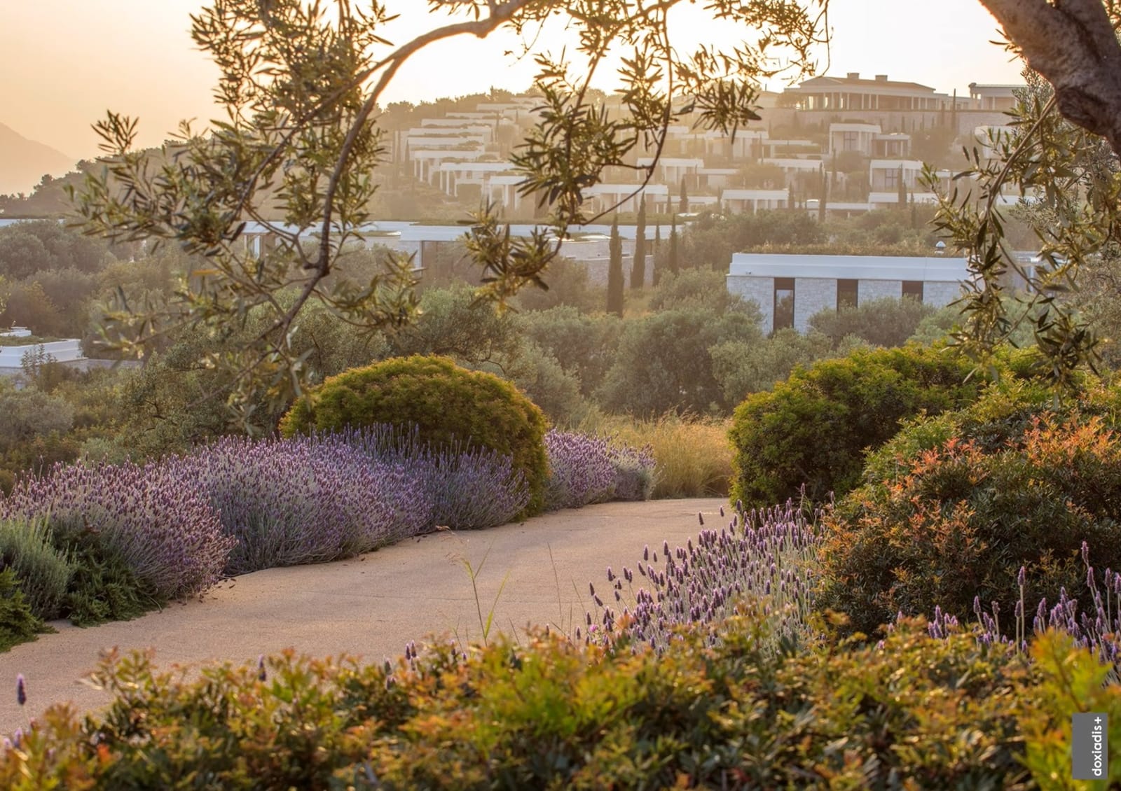 Μιλώντας για το έργο Amanzoe Hotel, ο κ. Δοξιάδης, εξηγεί την σχεδιαστική φιλοσοφία και πορεία: “Στραφήκαμε στις τυπολογίες τοπίου που υπάρχουν γύρω από το οικοδόμημα, ελαιώνες, πευκώνες, οικοτόπους με φρύγανα, και με αυτές συνθέσαμε το τοπίο του Amanzoe.”