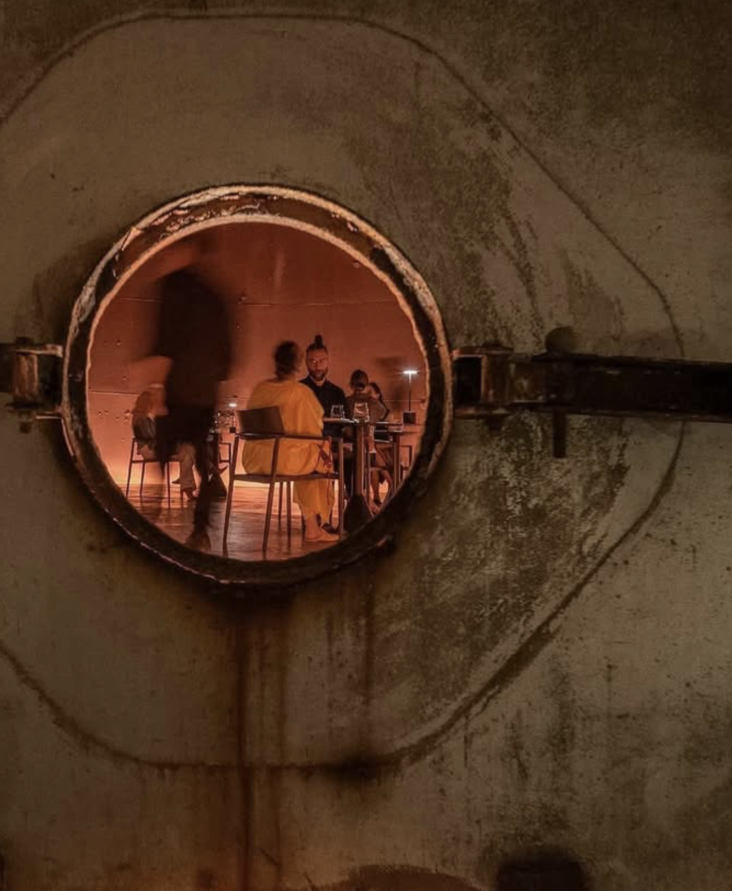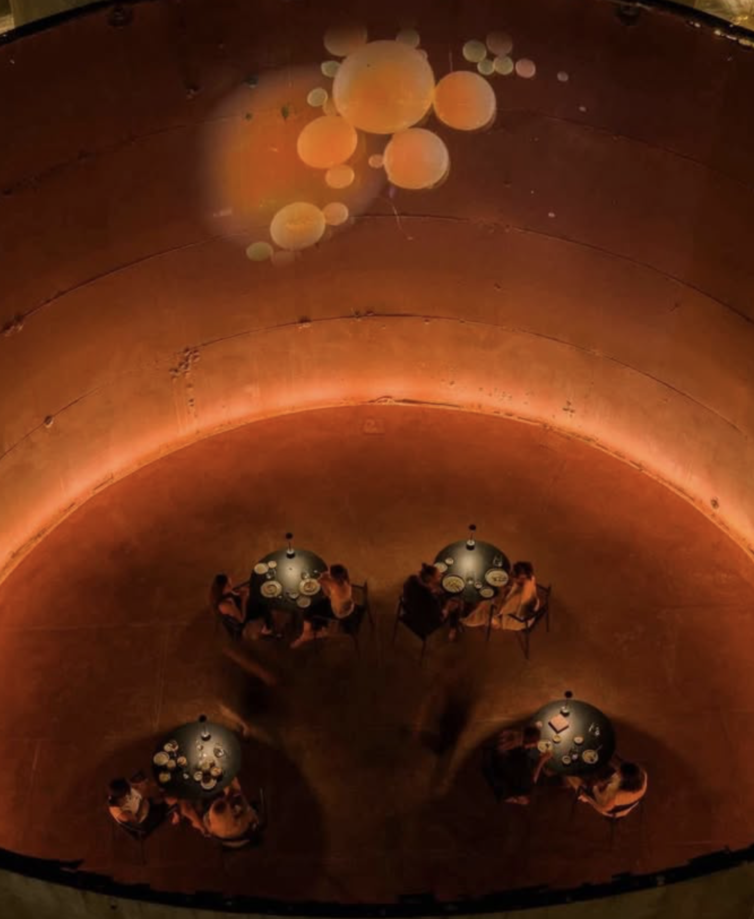 Με αυτή την προοπτική κατά νου, εξήγησε το πως μια δεξαμενή έχει μετατραπεί σε πλατφόρμα γευσιγνωσίας, η οποία λειτουργεί σε ένα πρώτο επίπεδο ως εστιατόριο, αλλά αποτελεί και ένα βήμα όπου καλούνται καλλιτέχνες να σχολιάσουν ποικίλες θεματικές, όπως για παράδειγμα “η Ζύμωση” ως μνήμη του τόπου, σε σχέση με το σήμερα και άλλους συμβολισμούς της ελληνικής παράδοσης και κουλτούρας, συνδυάζοντας multi media art με γαστρονομία.