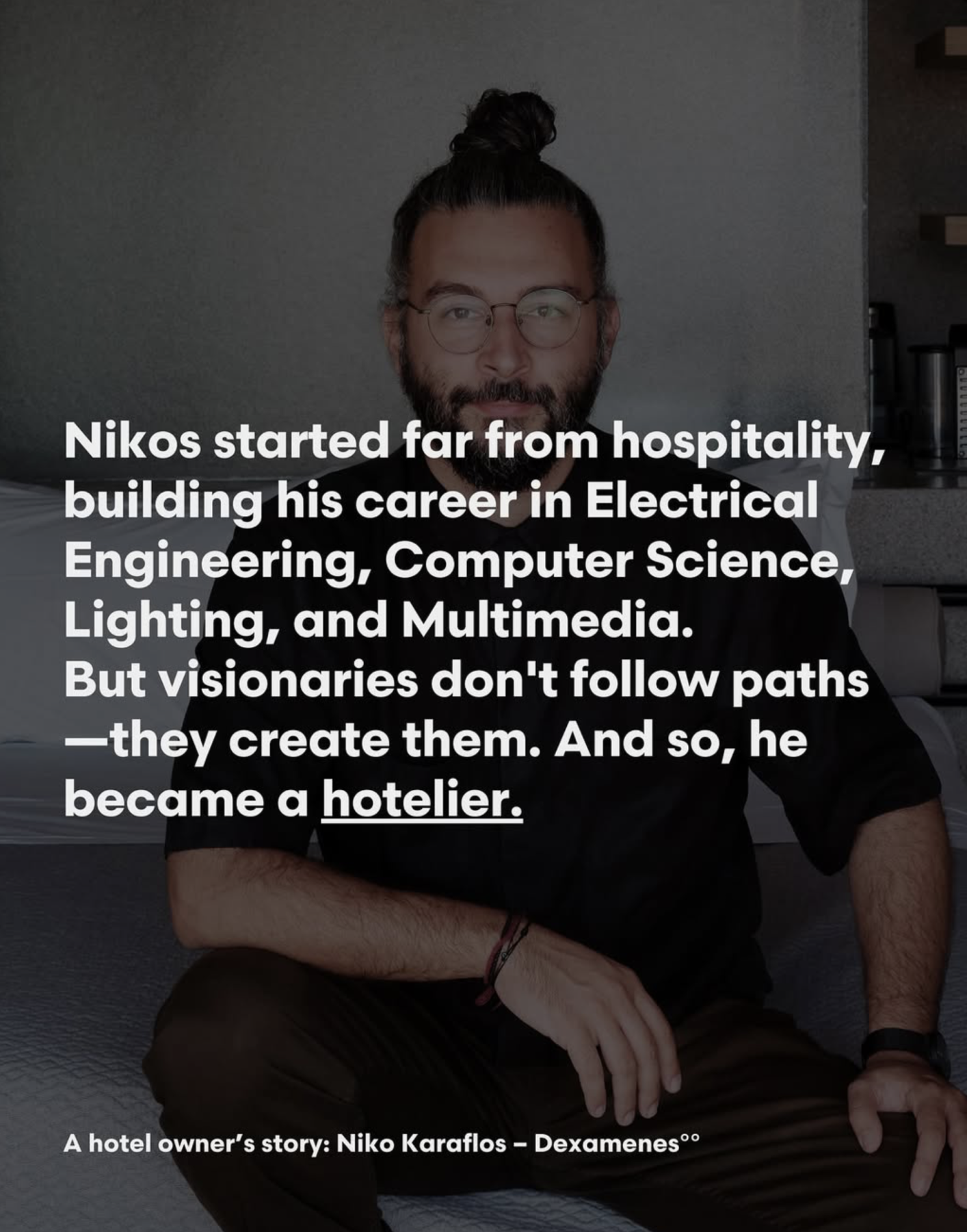 On the weekend of October 18–19, Technopolis City of Athens will be transformed into a cinematic setting as part of Hotel Experience 2025, welcoming speakers and visitors from across the luxury hospitality ecosystem. On Saturday, October 18, watch Nikos Karaflos (Hotelier and Owner of Dexamenes Seaside Resort and Spa) talk with Danai Makri (Head of Strategy and Content at Design Ambassador) about the concept of the hotel as an incubator of ideas.