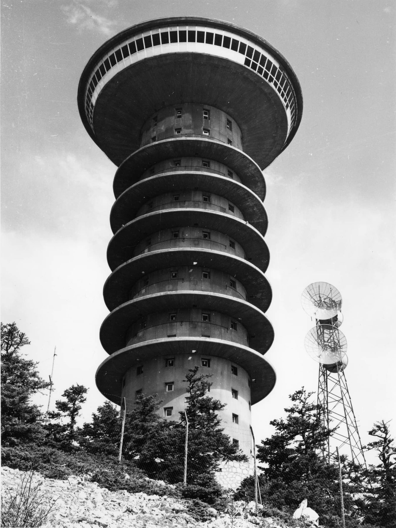 Πύργος ‘μικροκυμάτων’ στην Πάρνηθα. Έργο του Γραφείου Δοξιάδη. Αρχές δεκαετίας ’70. Αρχείο Κωνσταντίνου Α. Δοξιάδη / © Ίδρυμα Κωνσταντίνου και Έμμας Δοξιάδη