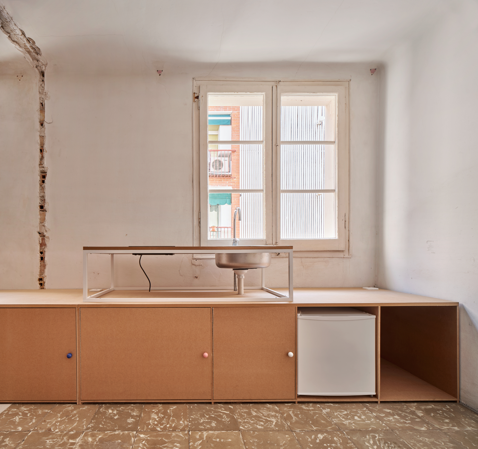 In the ninth episode, we follow Spanish studio Takk as they renovate a 50 m² apartment in Barcelona on a remarkably modest budget of 10,000 euros, addressing both the current housing crisis and climate change challenges. The project unfolds through an inclusive, open-ended design strategy in which rooms are nested within one another, prioritizing affordability, material honesty, and an energy-efficient domestic model.