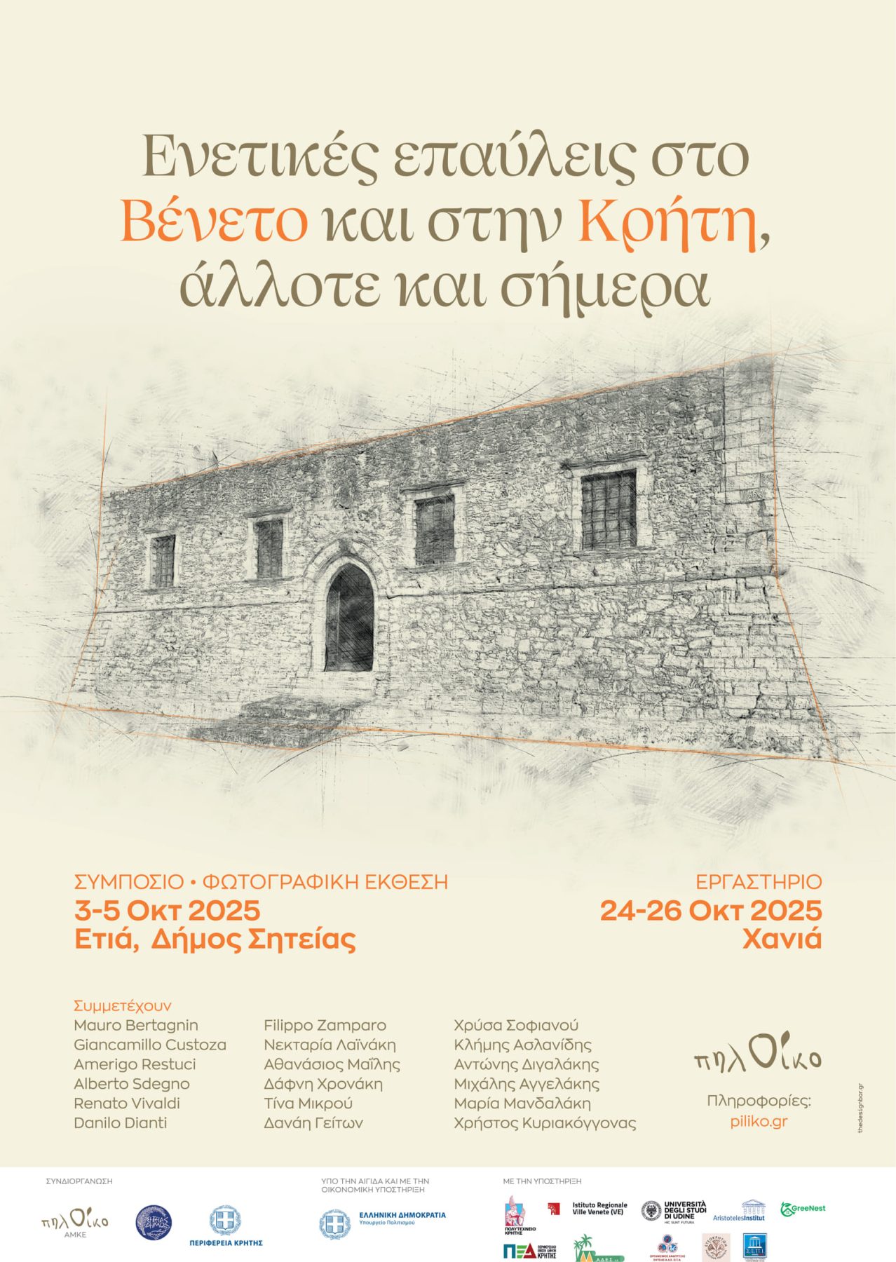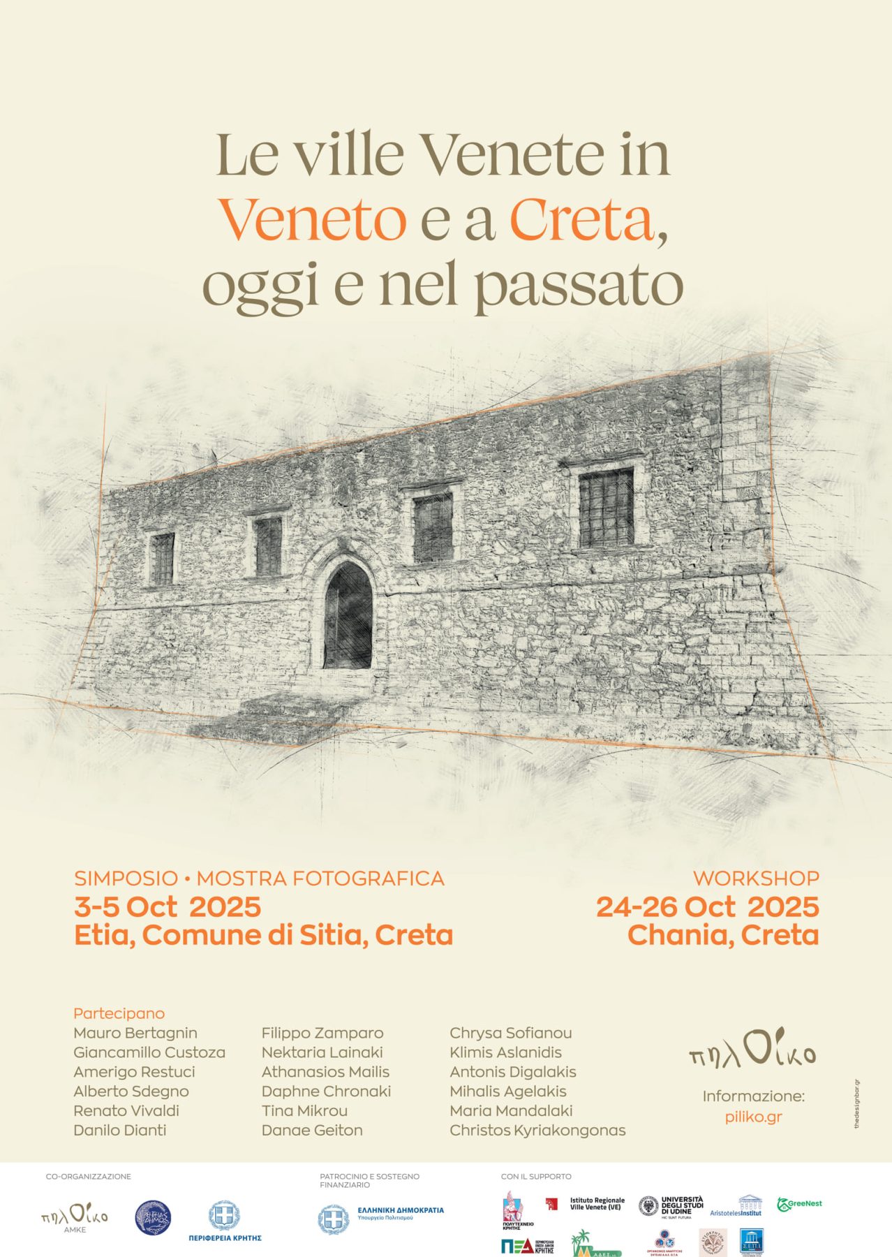 H “πηλΟίκο” α.μ.κ.ε. μαζί με το Δήμο Σητείας και την Περιφέρεια Κρήτης, την οικονομική υποστήριξη και Αιγίδα του Υπουργείου Πολιτισμού καθώς και με την υποστήριξη του Πολυτεχνείου Κρήτης, του οργανισμού Istituto regionale ville Venete, της Αρχιτεκτονικής Σχολής του Πανεπιστημίου του Udine και άλλους φορείς προγραμματίζει τη δράση: “Ενετικές επαύλεις, στο Βένετο και στην Κρήτη, άλλοτε και σήμερα” τον Οκτώβριο του 2025.