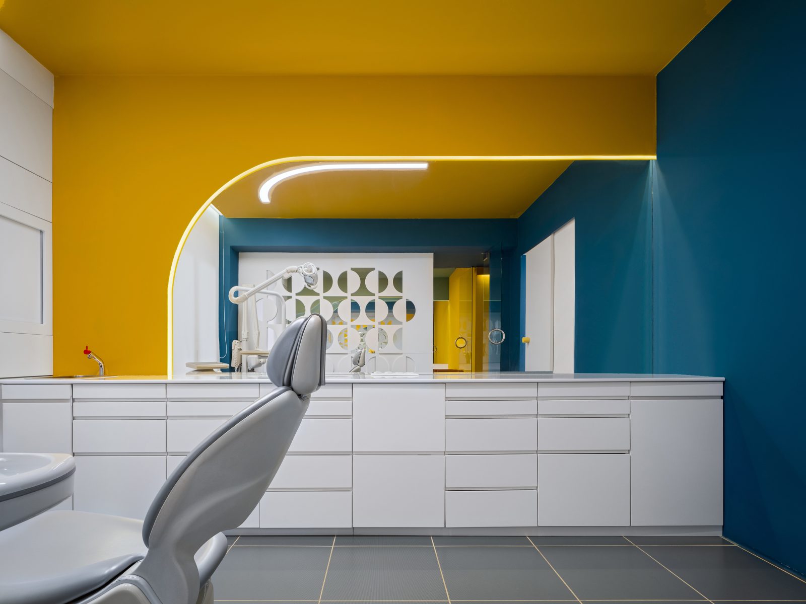 Και πόσο απελευθερωτικό είναι να προσεγγίζεις τον σχεδιασμό ενός οδοντιατρείου, που συμβατικά θεωρείται ένας ψυχρός και άτονος χώρος, αντλώντας απεριόριστα από την χρωματική παλέτα.