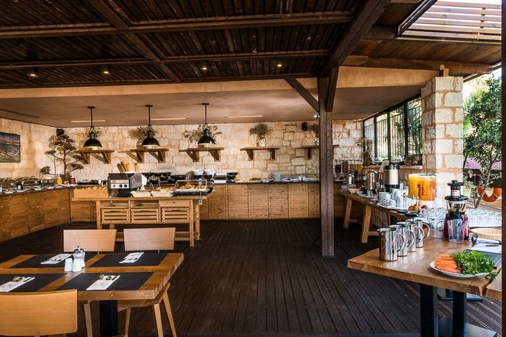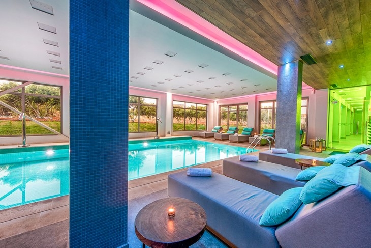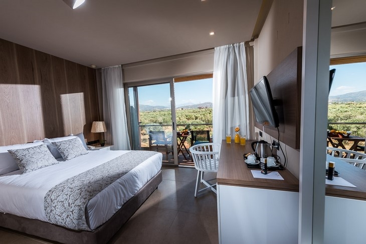 Oak wood is used with special constructions on the walls and furniture, while warm colors were selected for the fabrics. The bathrooms are lined with tiles in large dimensions also in natural marble colors. Thus, the modern interior in combination with the unique use of led lightning and all the necessities that a hotel room needs, offer enjoyable holidays in a fresh and relaxing environment.