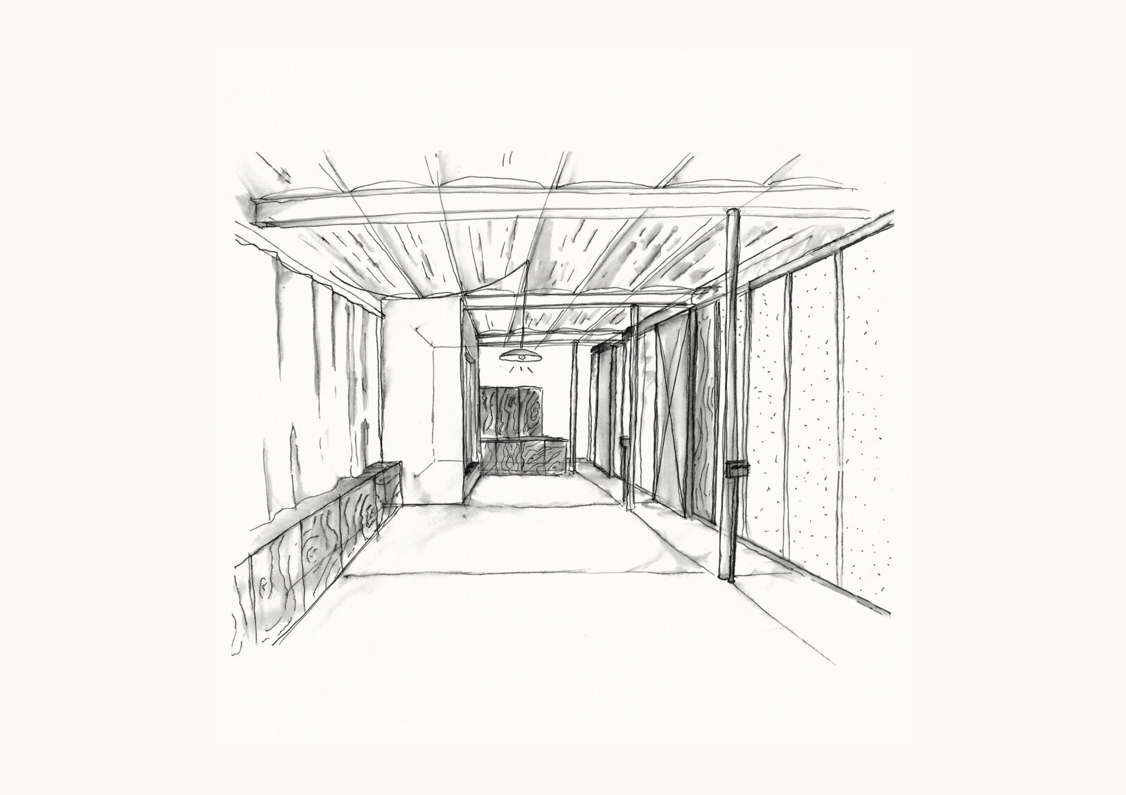 To this end, we placed a glass curtain wall with sliding door panels following the course of the existing steel columns, with an offset of a typical corridor.