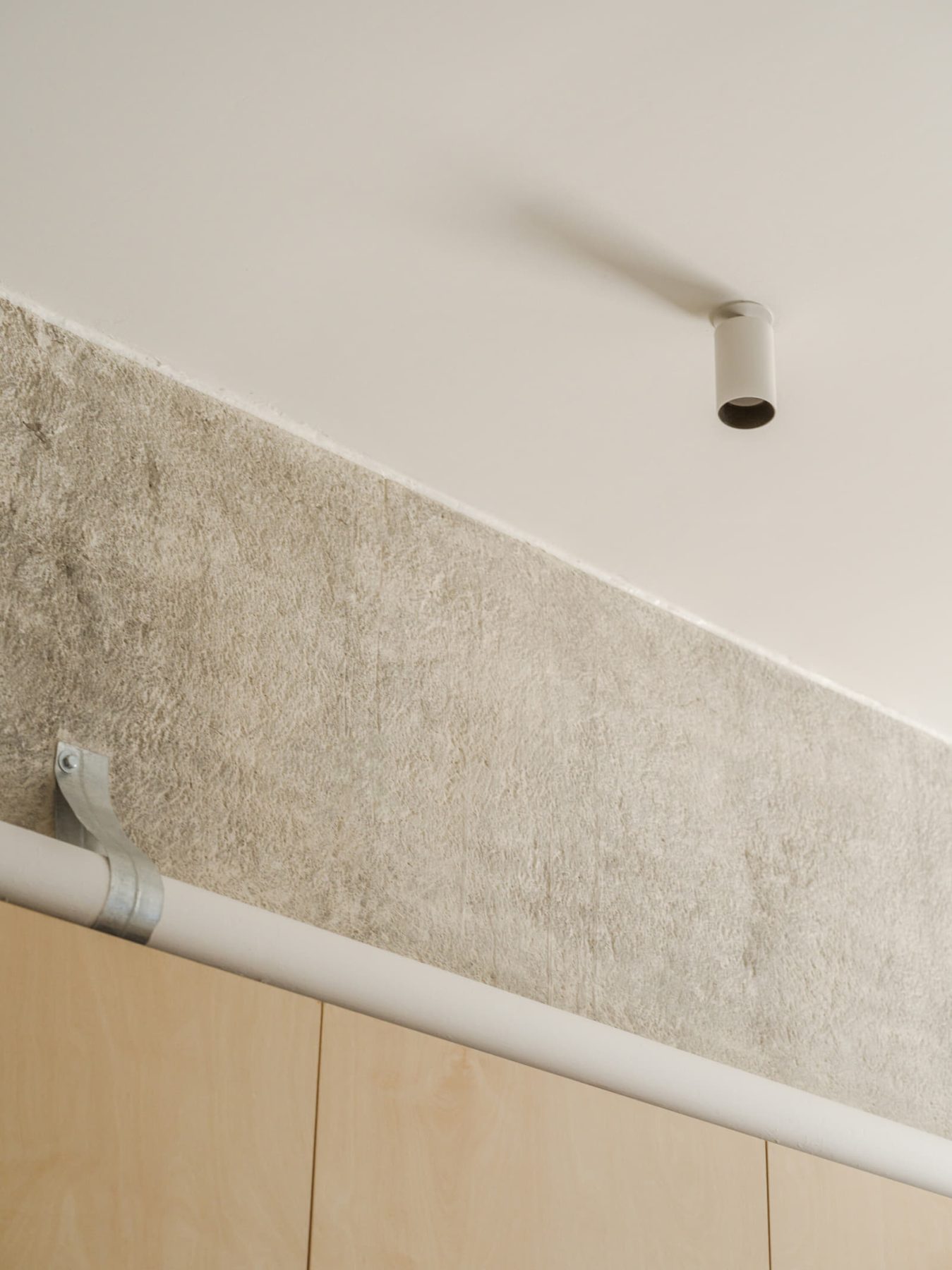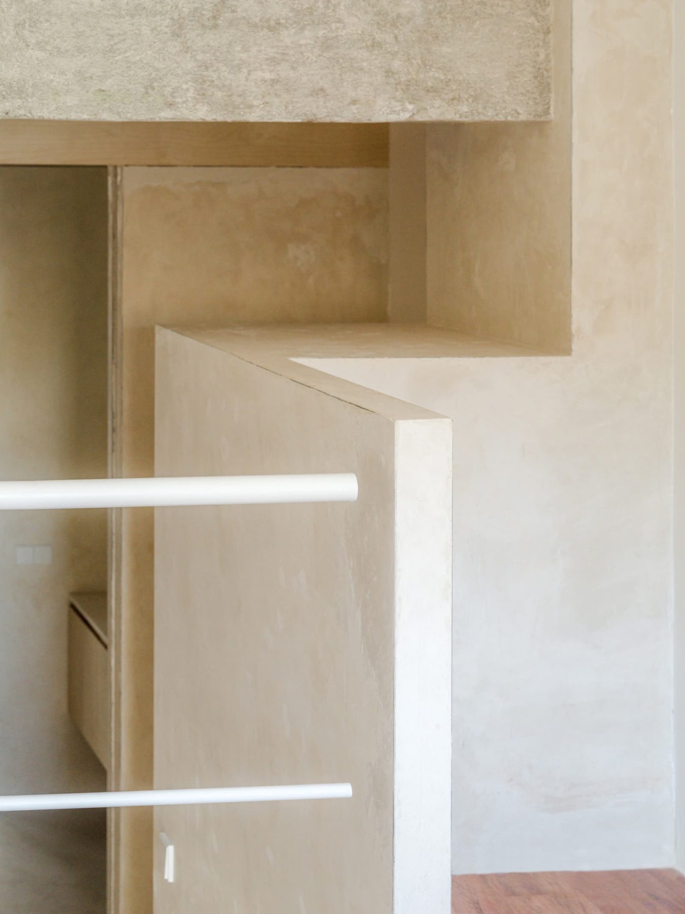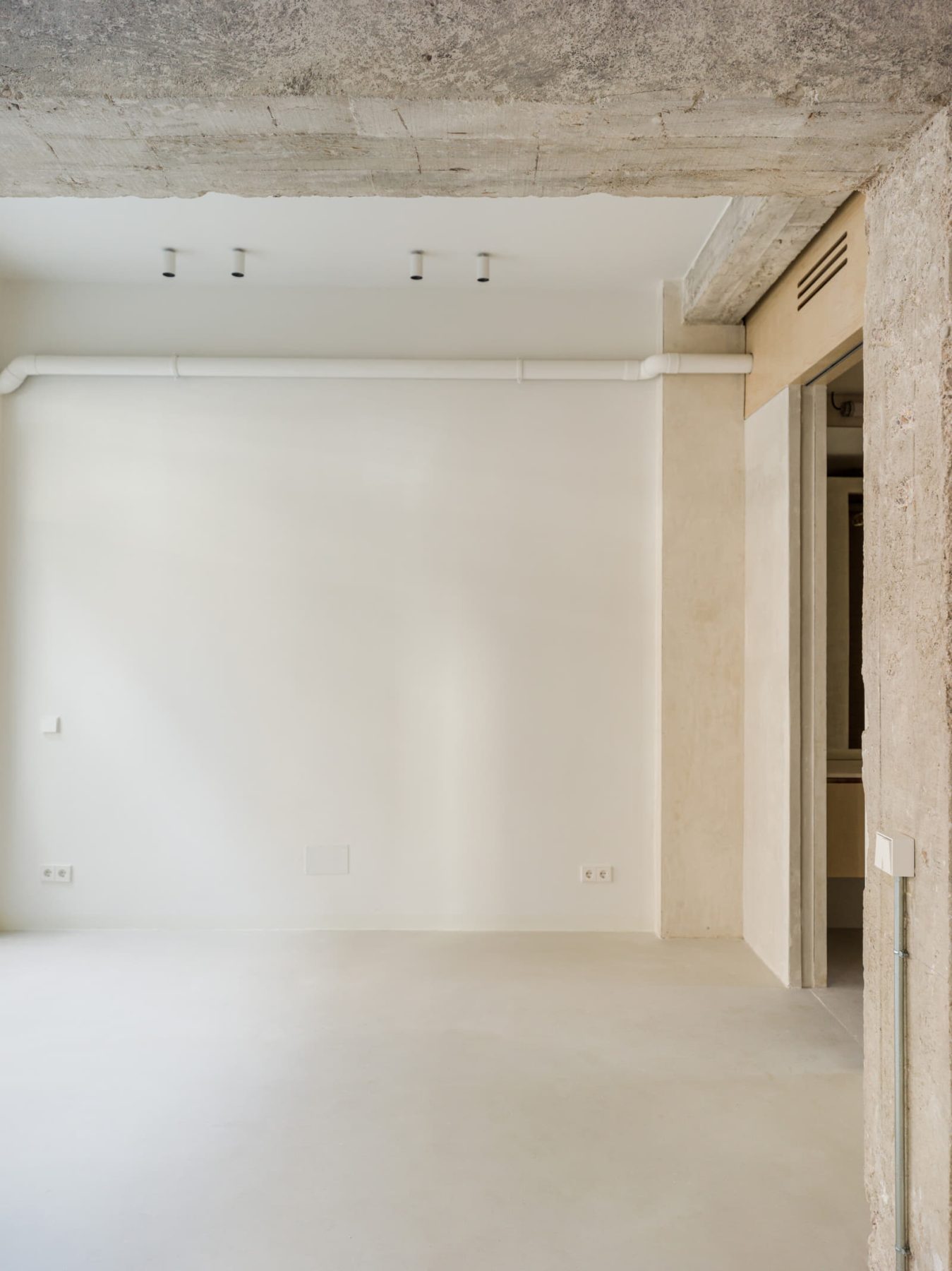 The goal of the intervention is to preserve the essence of the original space, maintaining the strength of its concrete structure and blending it with materials that add texture, contrast, and functionality.