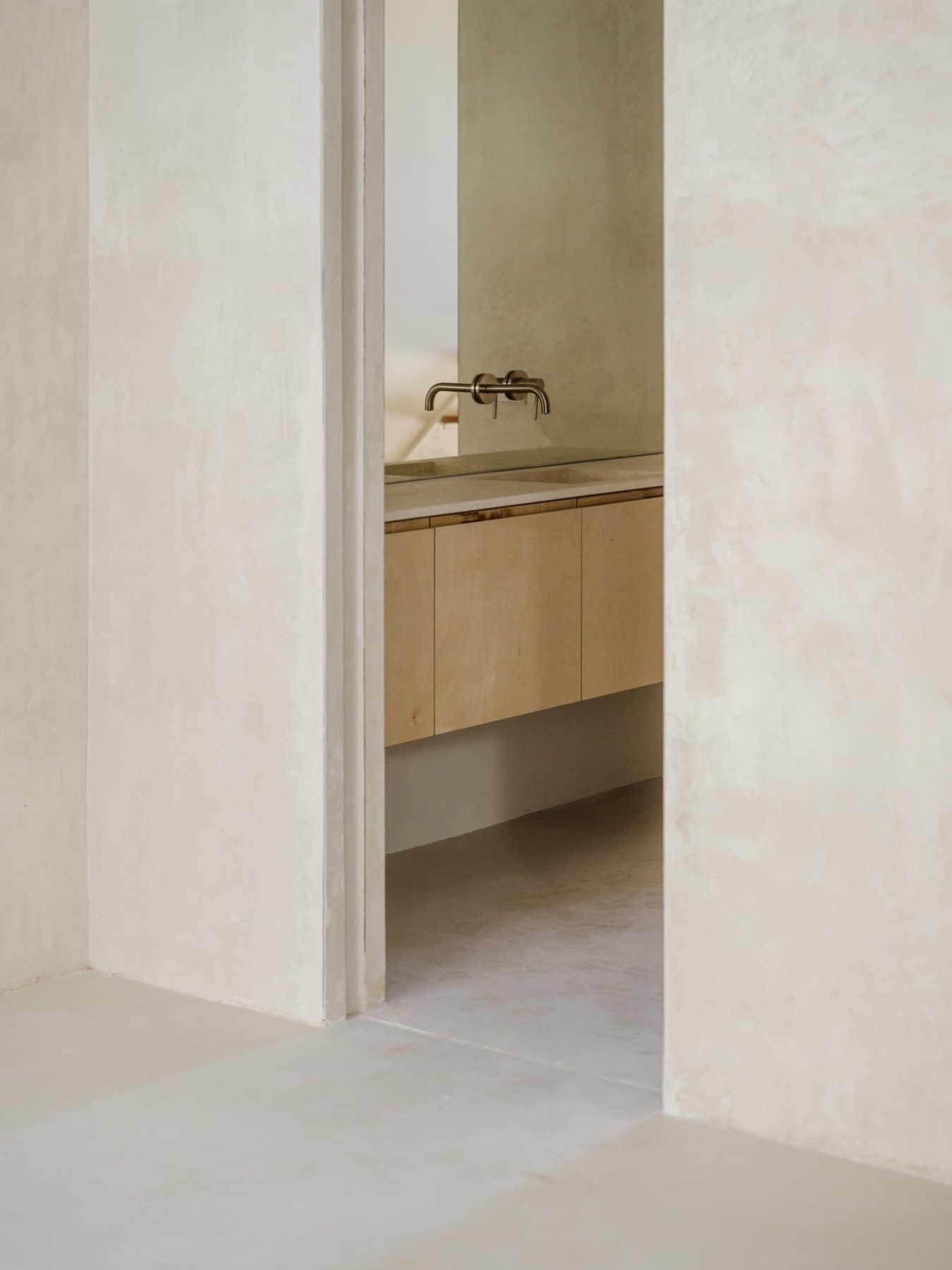 The exposed brick walls and scraped concrete structure preserve the space’s character, while birch wood in the furniture brings warmth and precision to the details.