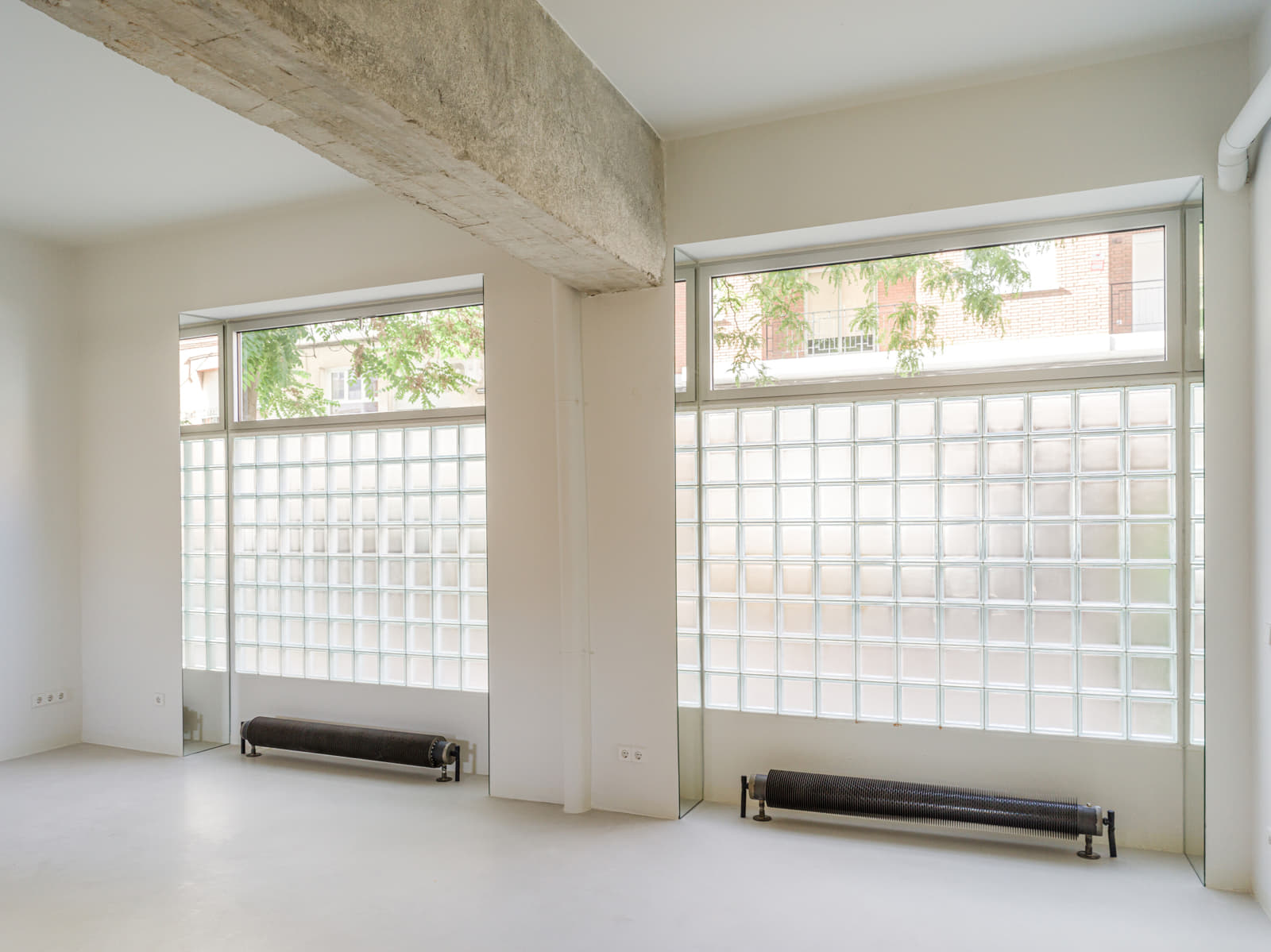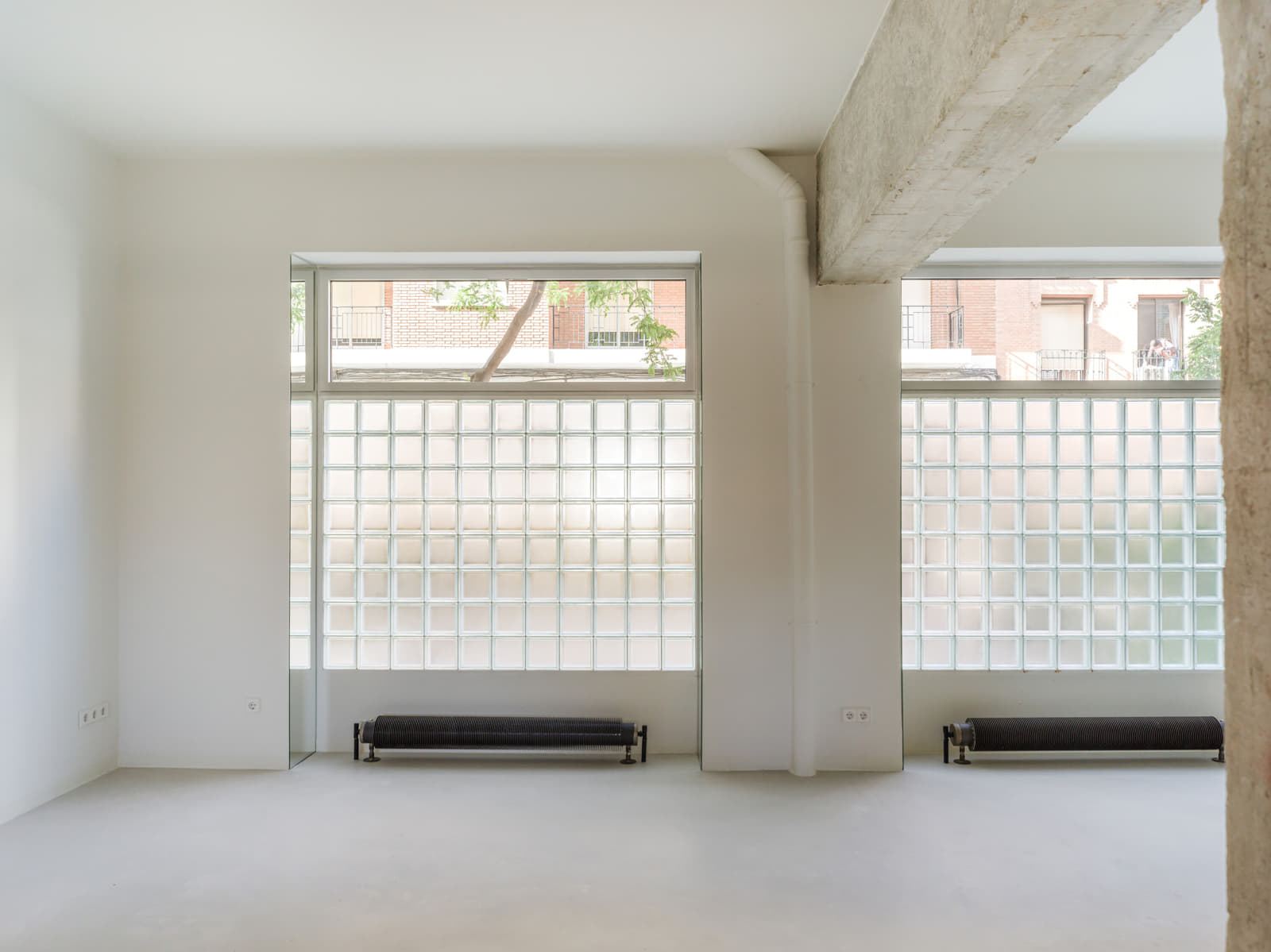 Situated in Tetuán neighbourhood in Madrid, the ground-floor vacant space of a former studio has been creativily redesigned as a home. Glass block windows and exposed rough materials shape the atmosphere of this space designed by Jorge Borondo + Ana Petra Moriyón.