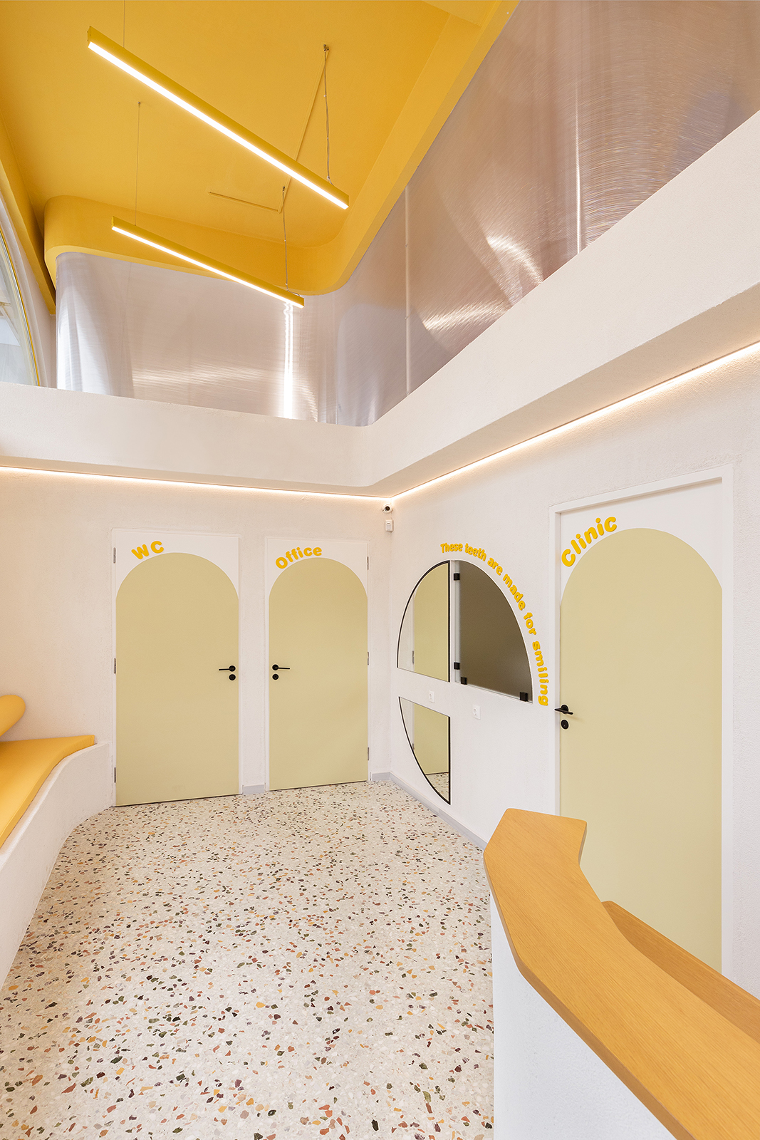 «Ο στόχος μας ήταν να δημιουργήσουμε έναν χώρο που σε κάνει να χαμογελάς πριν καν καθίσεις στην καρέκλα του γιατρού», σημειώνει η ομάδα. Το αποτέλεσμα είναι ένας χώρος με ξεκάθαρη ταυτότητα: λειτουργικός, ανθρώπινος και σχεδιασμένος με αγάπη για εκείνους που θα τον χρησιμοποιήσουν περισσότερο, τα παιδιά.