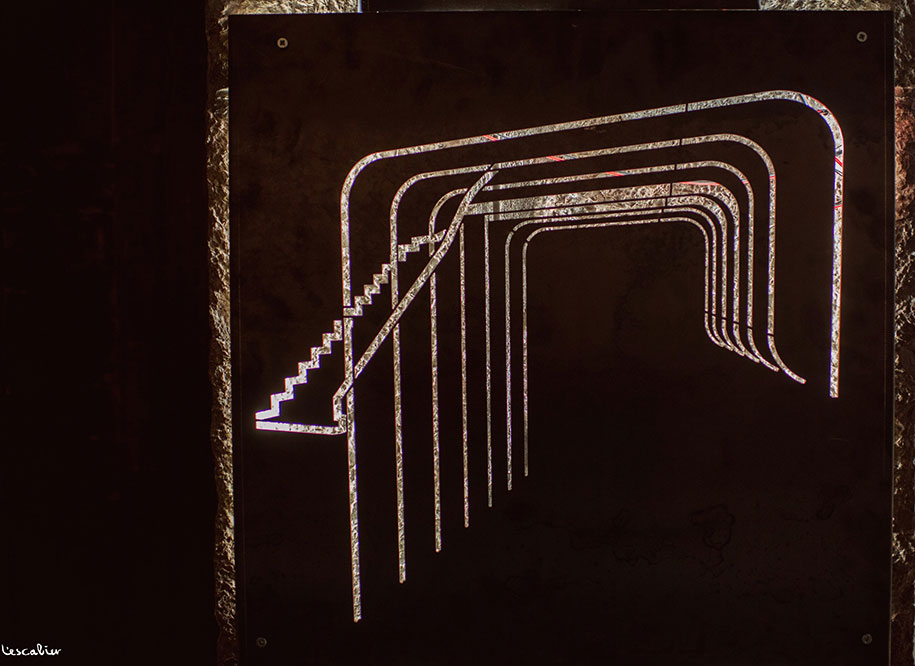 The same happened with the bearing rock wall-background that was covered with mortar. The choice to highlight the long axis of the plan came through the use of a “skeleton-like” structure of frames constructed from Η steel beams. These are bent in order to emphasize their role in inclosing the exhibitional space.