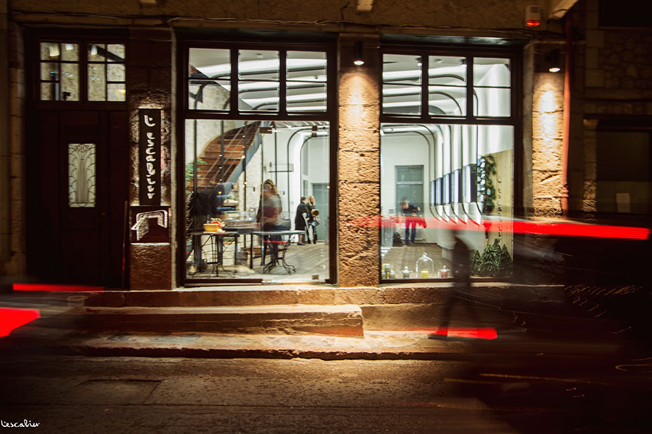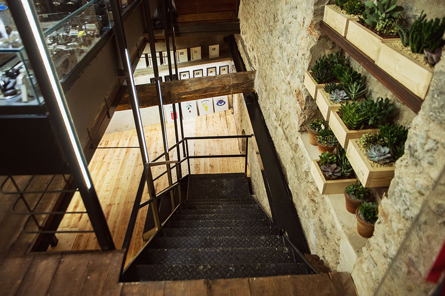 The “trans-formation” of an abandoned commercial space, situated along the main road of the village, into an exhibition space for small products of any kind. The staircase that led to the upper floor- and was formerly hidden- was chosen to be revealed due to its theatrical presence.