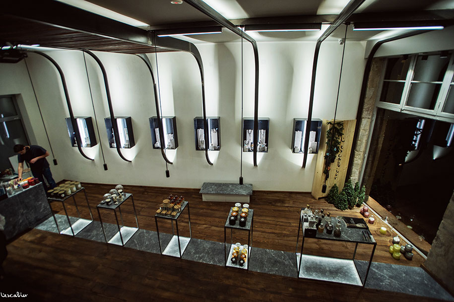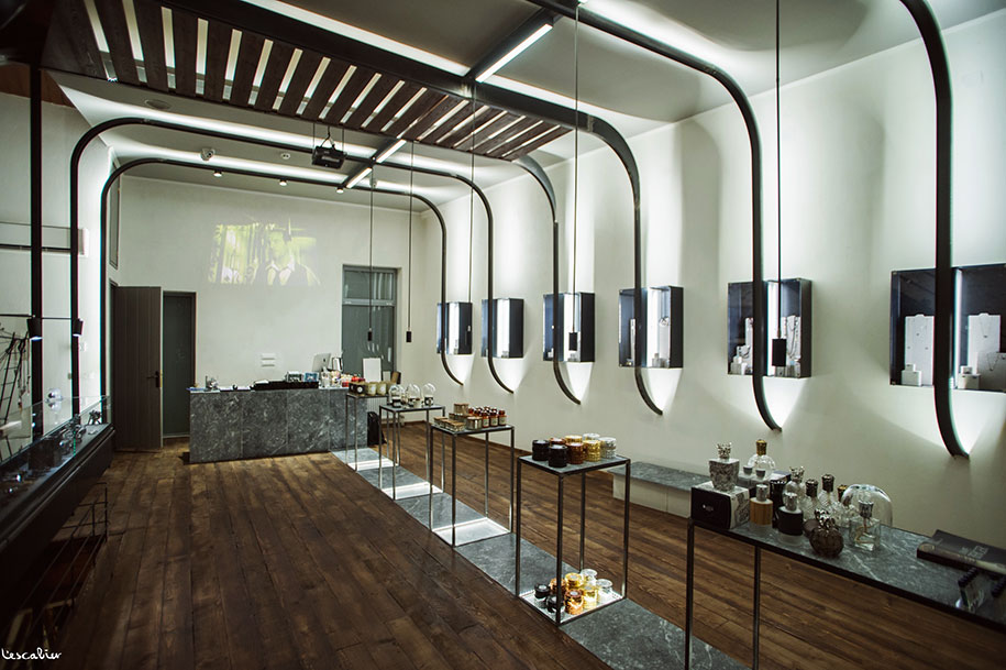 Finally, the carefully designed movement routes reveal a dipolic case study: the former store favoring the customers’ linear stroll whilst the latter enclosing the visitor into a nautilus-like wandering.