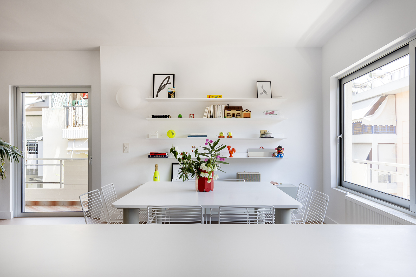 Situated in the lively neighbourhood of Ano Petralona, Athens, this 2023 apartment renovation offers a modern reinterpretation of a residence within a characteristic ’80s corner building. Occupying a total area of 130 square meters on the third floor, the original apartment was marked by a notably low ceiling and rooms of irregular dimensions.
