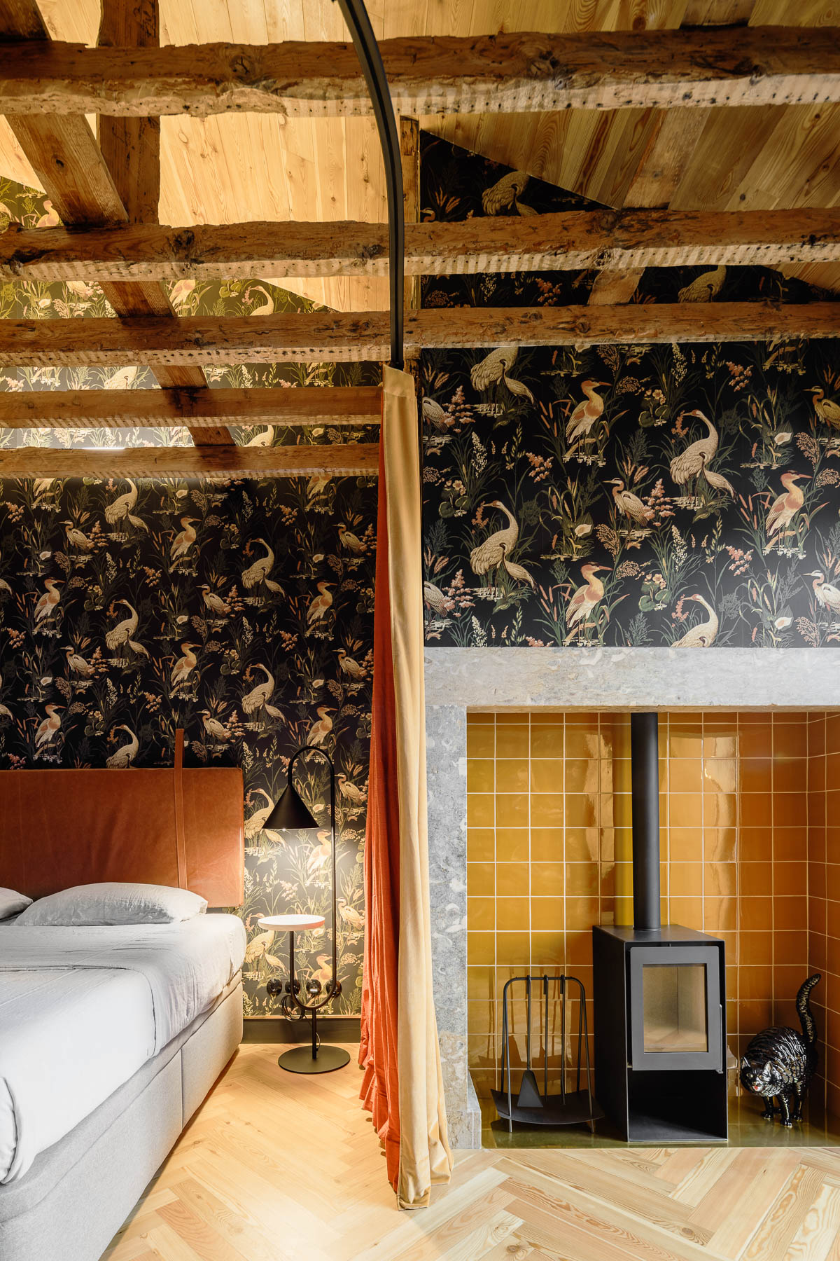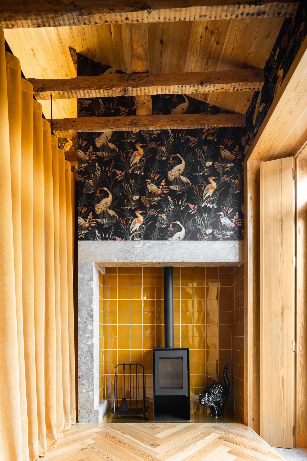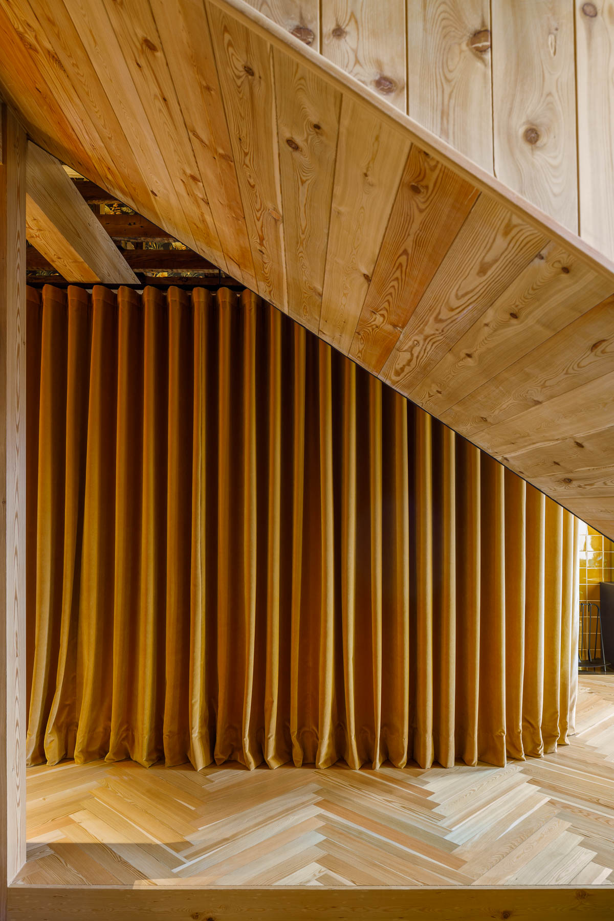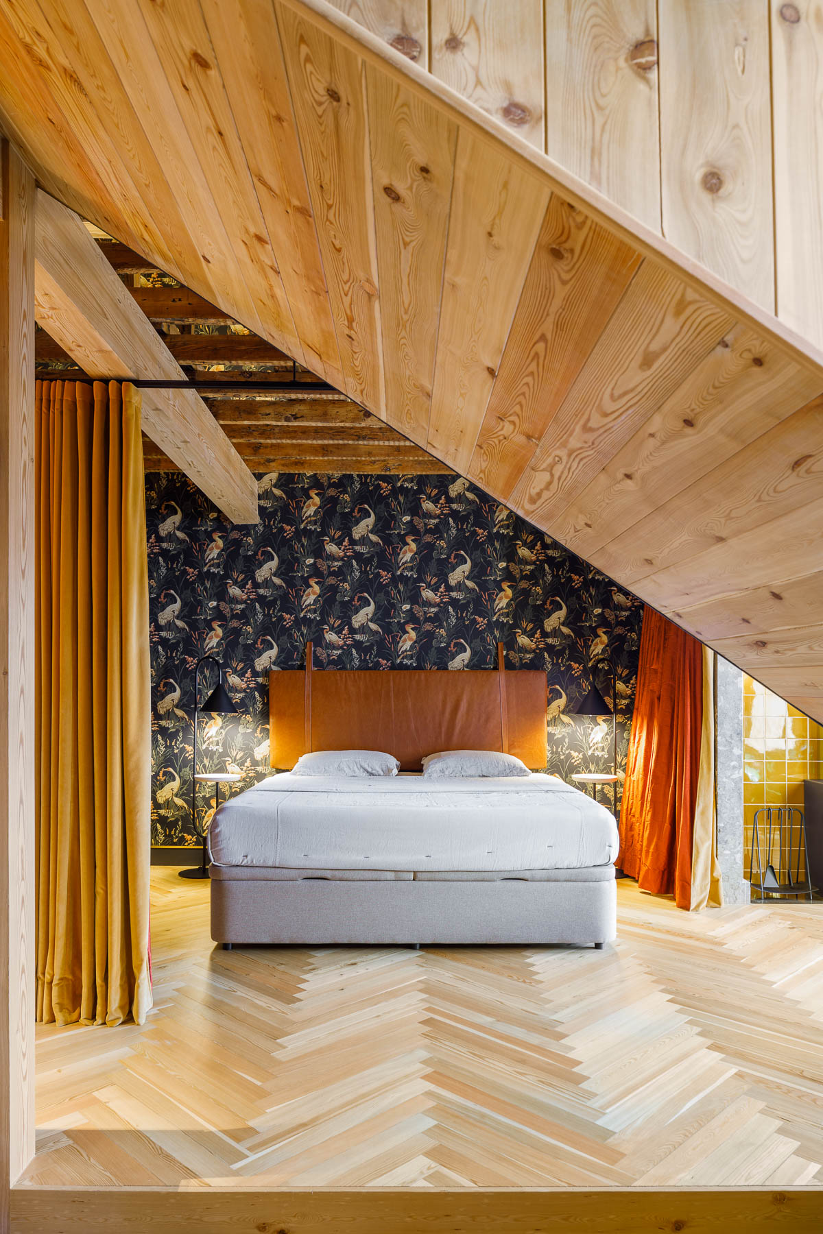 Examples of this are the stonework, the irregular stone masonry wall, the wooden beams and pillars of the roof, which are revealed and become a memory of the original construction system. A rigorous approach is established with a special focus on detail, choosing the pine wood as the primary material, valuing the harmony and compatibility between this material and the others selected.