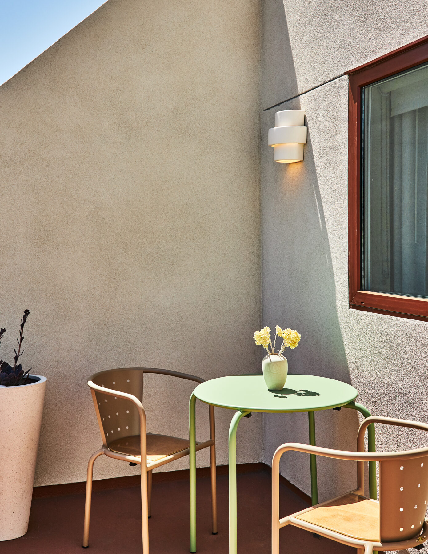Each 230 square-foot guest room features handcrafted details, whereas larger suites feature a balcony or terrace, a custom dining table, and a bespoke pull-out sofa — blending the charms of old-world travel with new-world comforts. Additionally, Home Studios designed custom furniture for each light and airy room, including upholstered headboard panels, rattan and wood wardrobes, and sculptural brass hooks, transporting travelers to a warm oasis in the midst of a dynamic and energetic urban resurgence.
