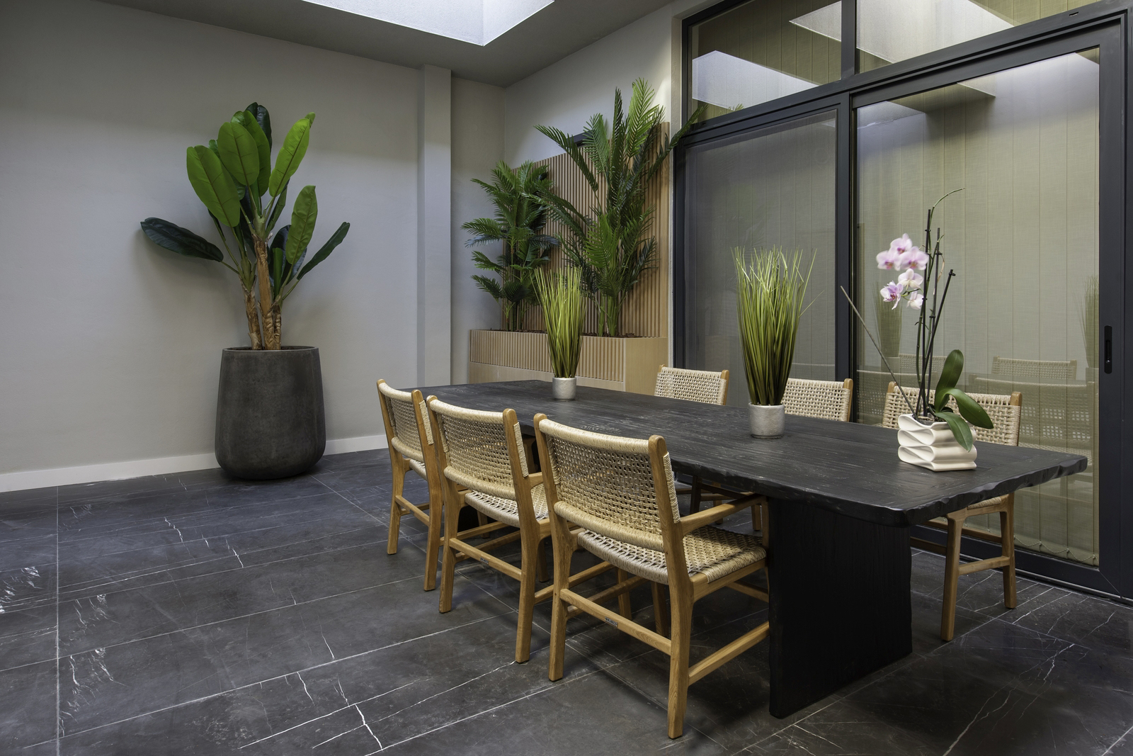 Σημαντικό ρόλο στη σύνθεση αποτέλεσε το ύψος του χώρου, καθώς στο καθιστικό σκοπίμως δεν τοποθετήθηκαν οροφές, διατηρώντας ελεύθερο ύψος από πάτωμα σε πλάκα.