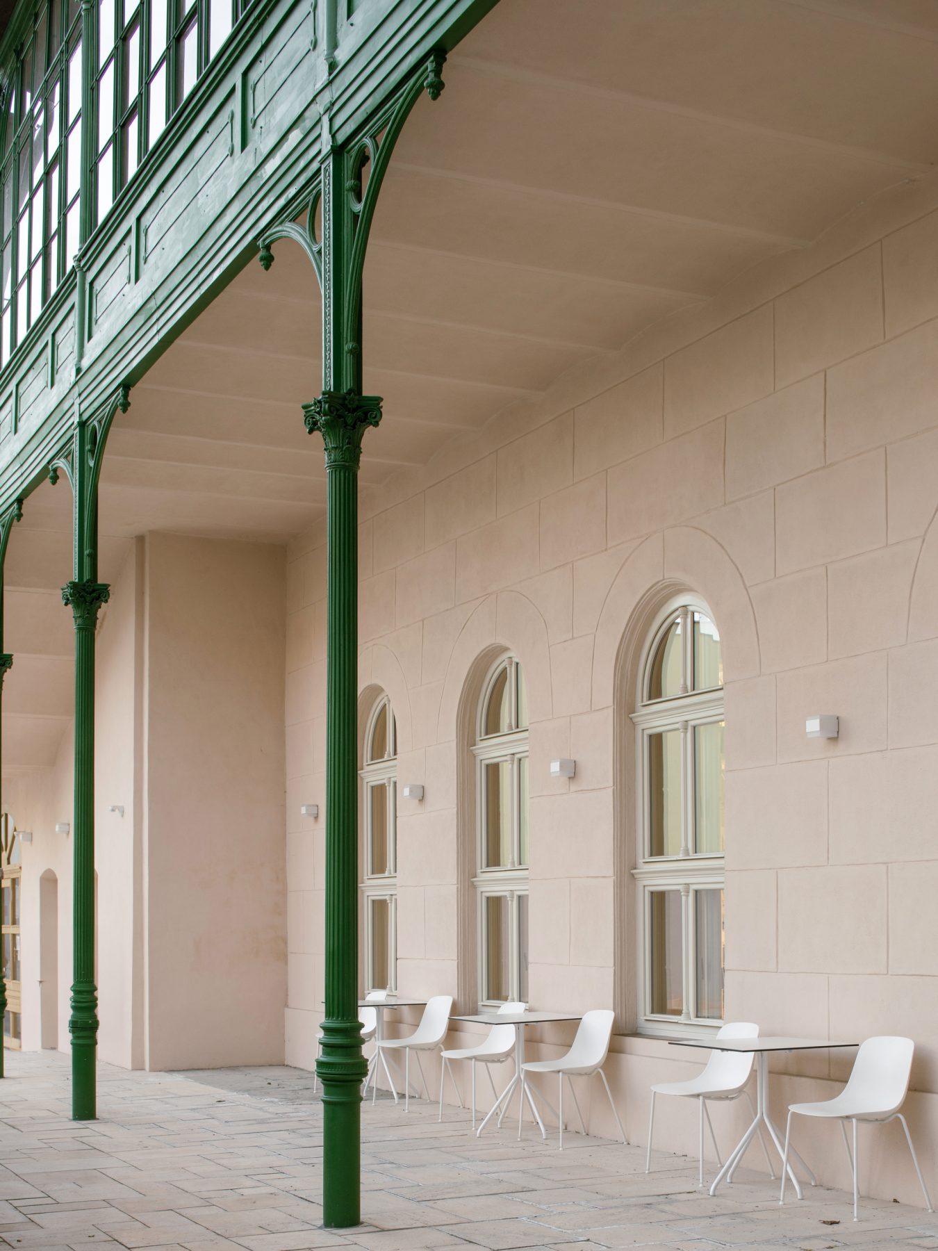 Throughout the project, the layered history of the building remains legible, from the original massive masonry walls to later cast iron interventions and the newly introduced delicate steel structures.