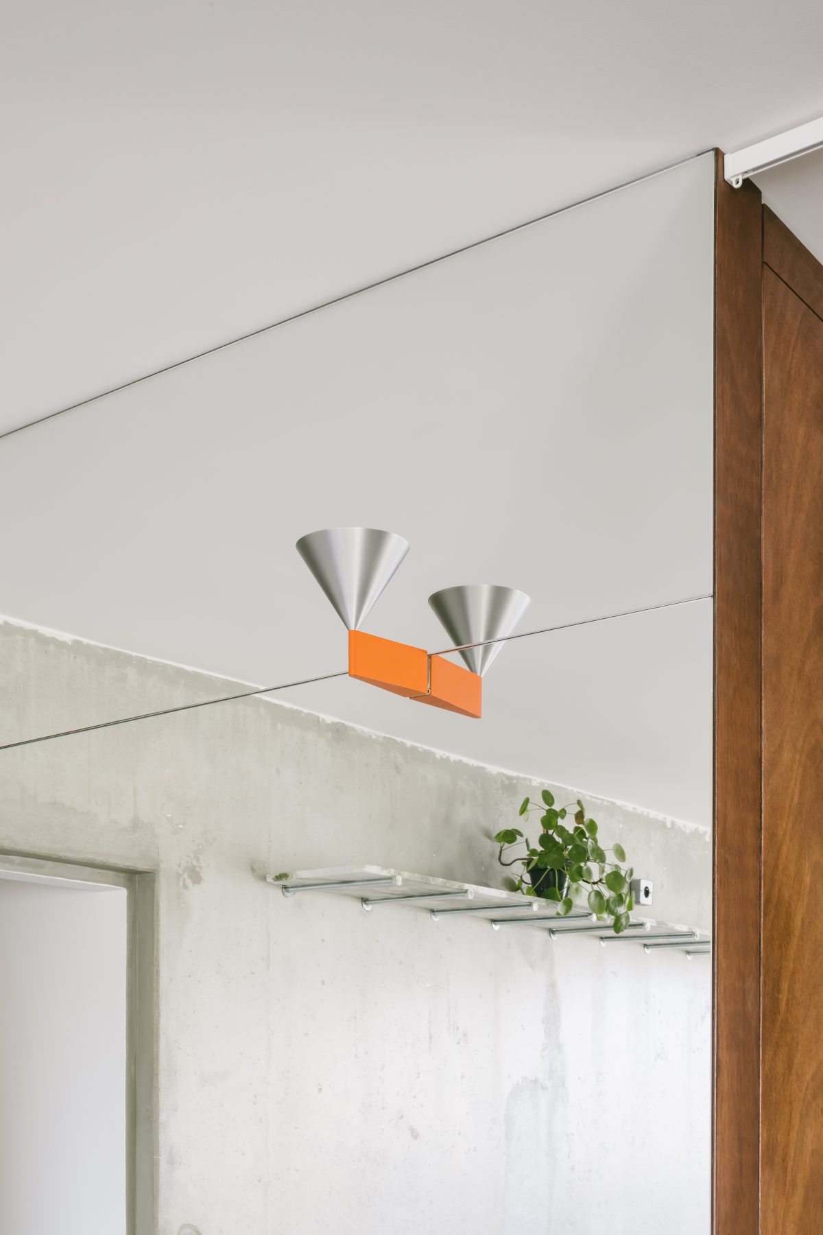 Its reflective surface captures and redistributes natural light, extending brightness into the deeper areas of the apartment. Color is thus employed as an architectural tool, reinforcing orientation and enhancing spatial perception—an approach aligned with contemporary interior practices that privilege chromatic strategies over formal excess.