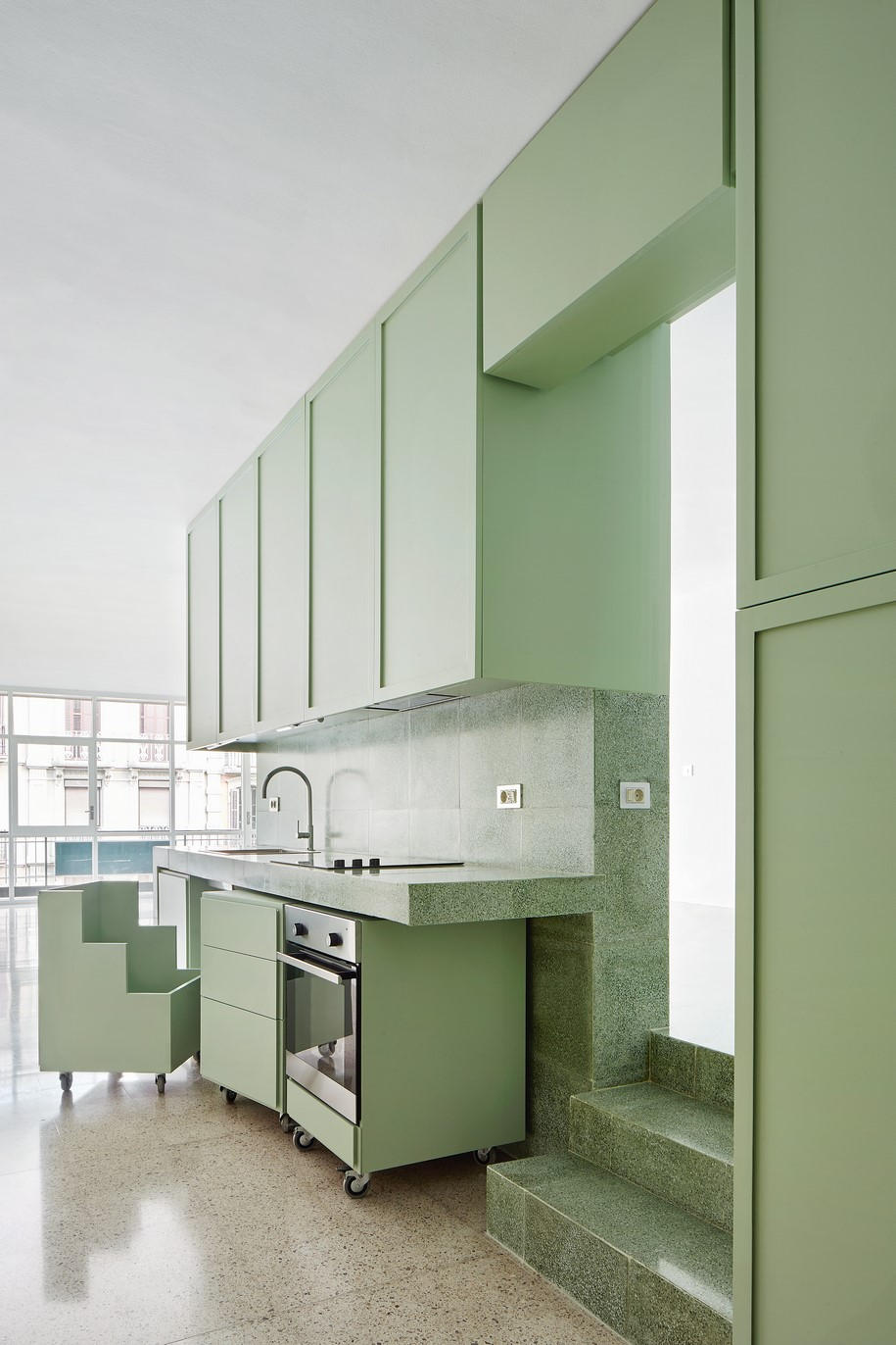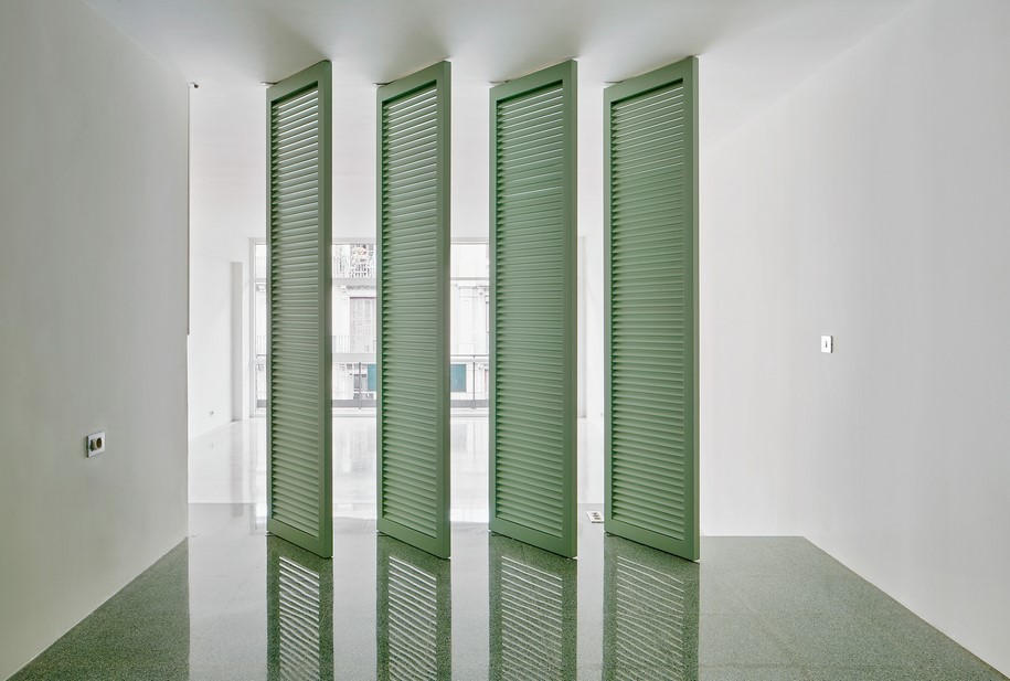 The strategy consists in a compact volume that resolves the bedroom, the kitchen and the bathroom as a space reduced to one of the corners of the apartment’s available area.