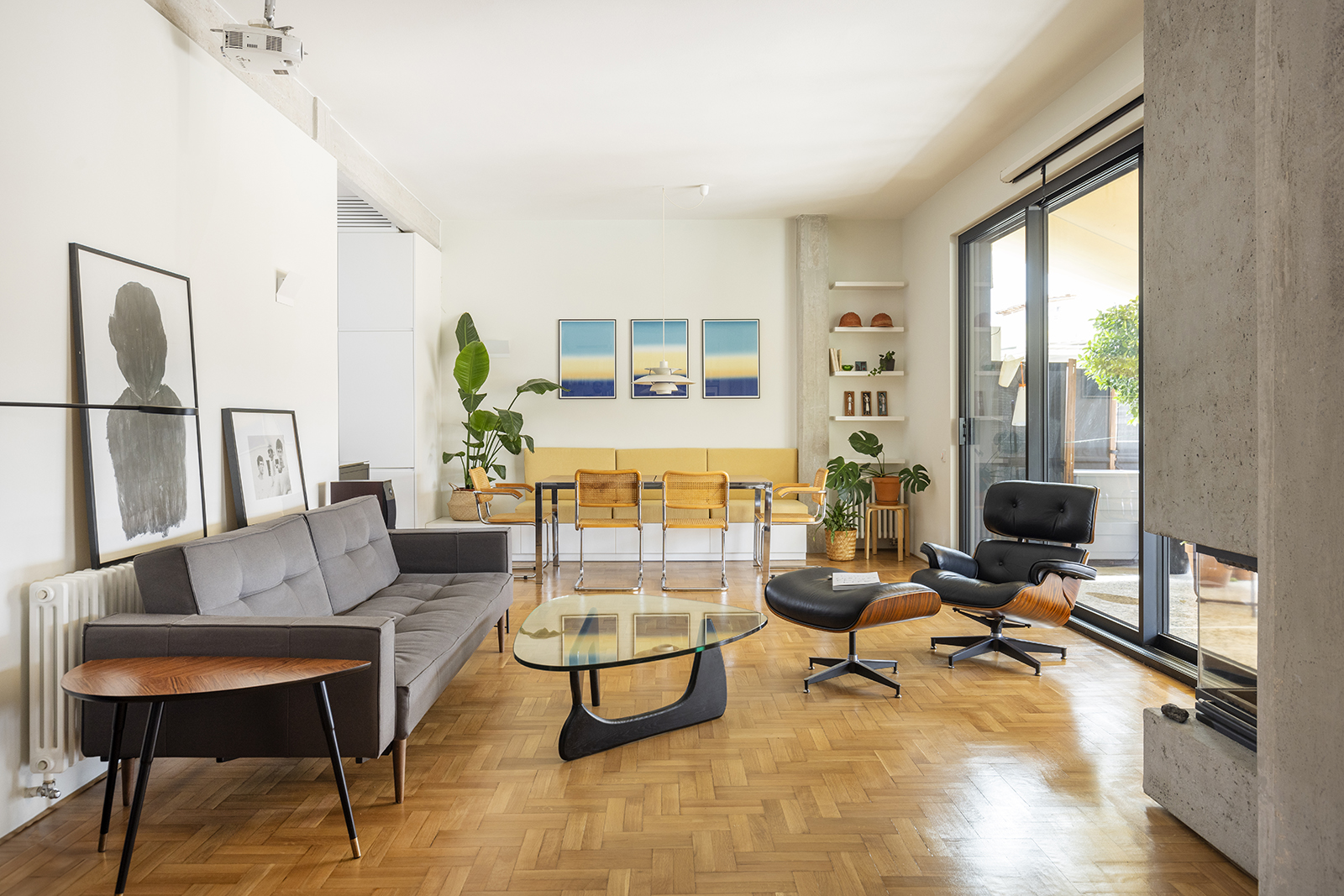 The apartment extends outward through three terraces, reinforcing a Mediterranean mode of living that blurs the boundary between interior and exterior.